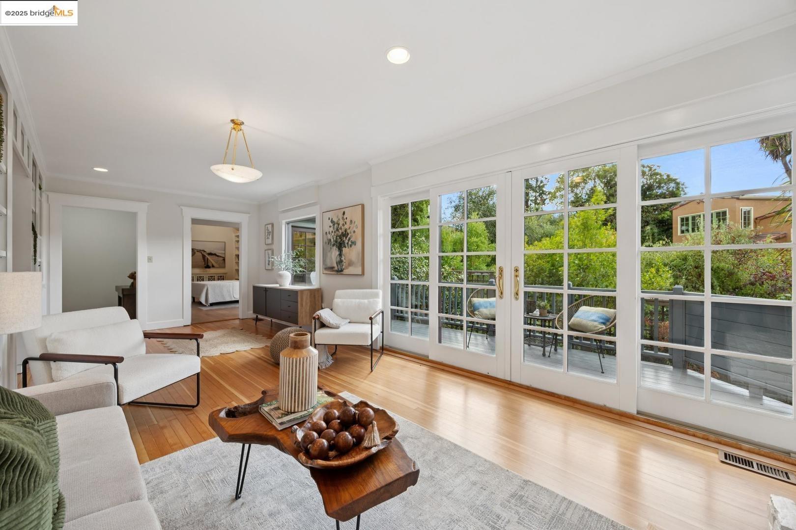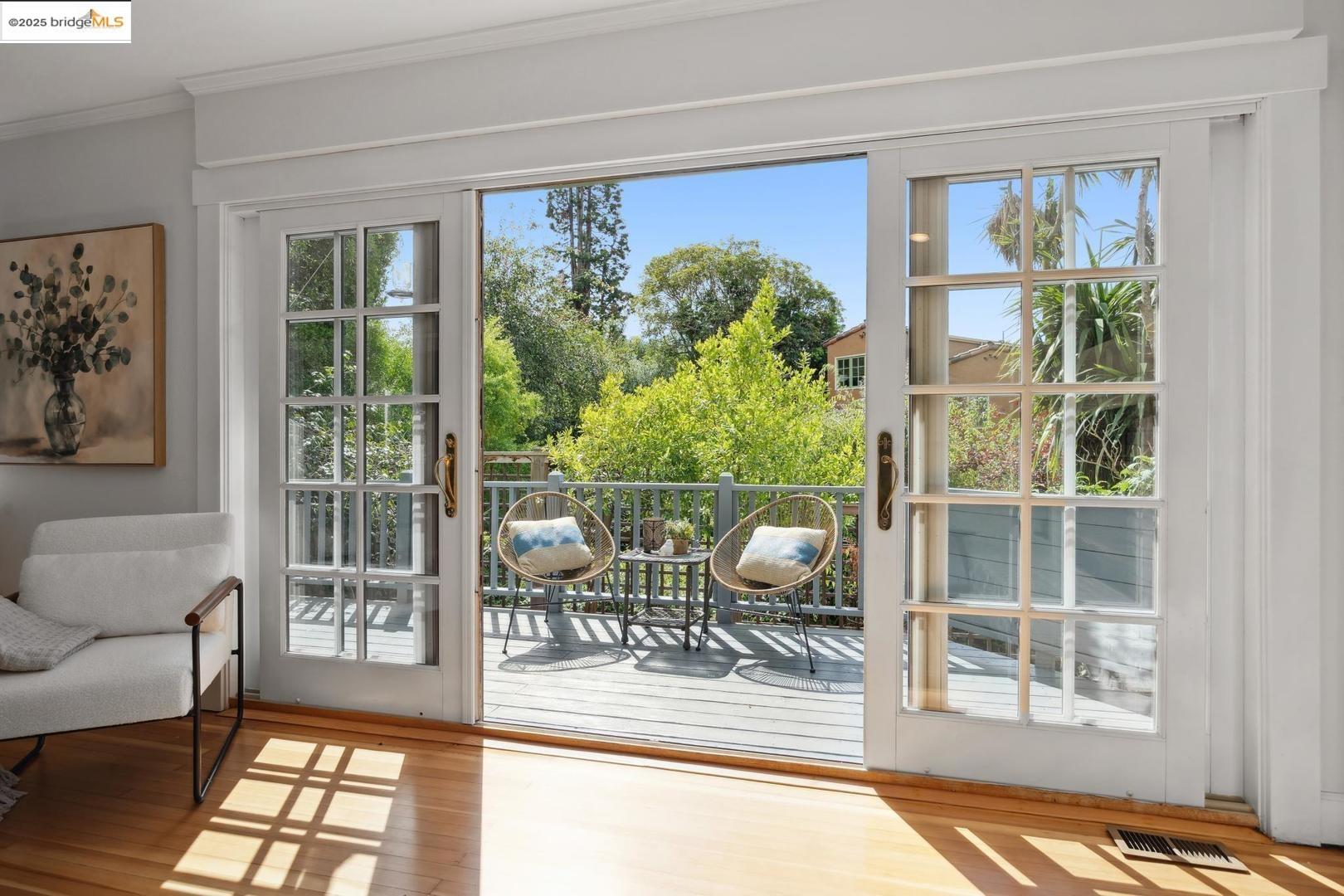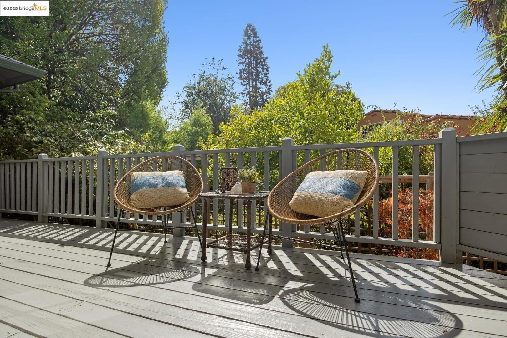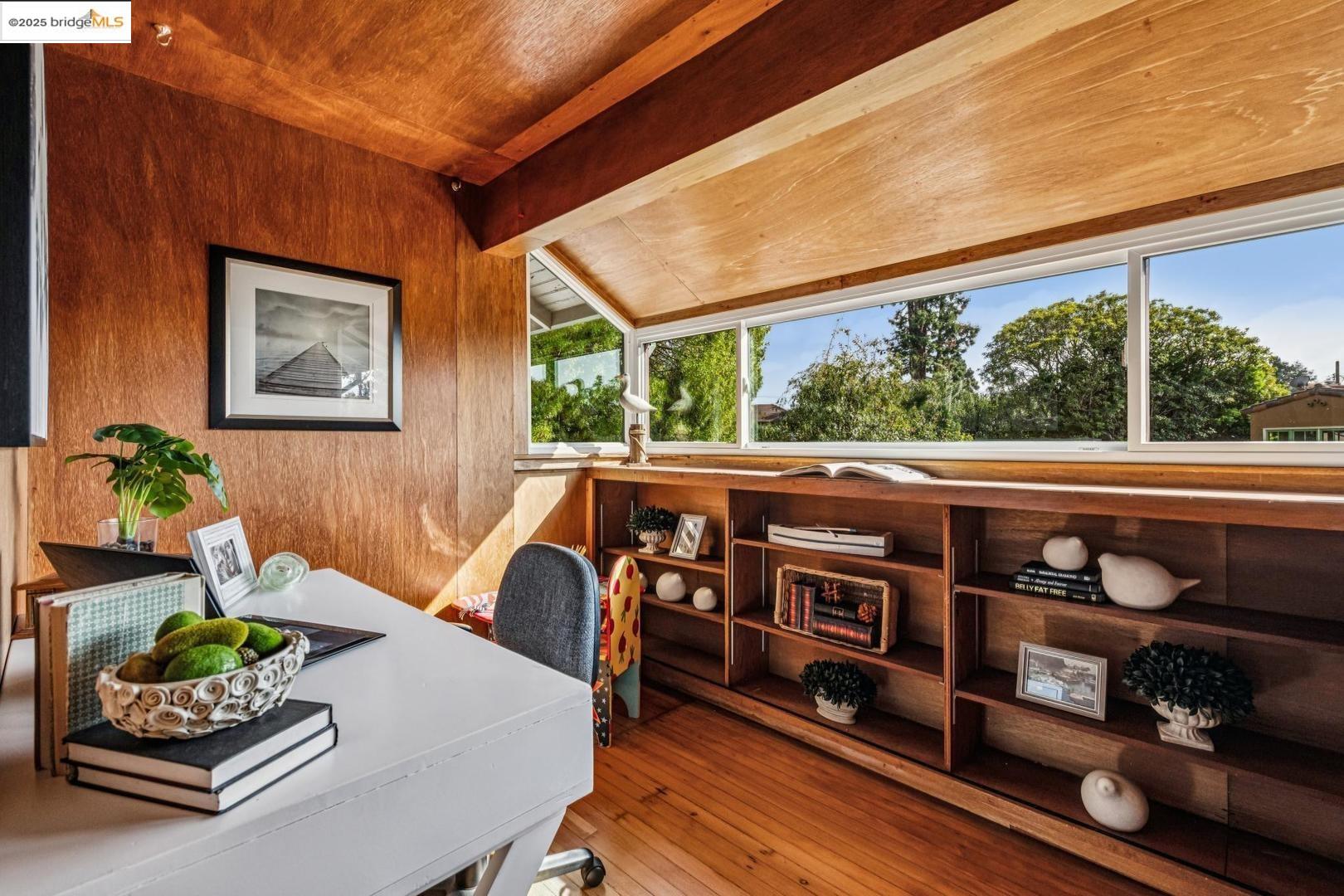 1296 Monterey Ave isn't the kind of place you notice right away. It's tucked back behind another house, almost like it wants to stay a little hidden. That's part of the charm--once you find it, you feel like you've discovered a little retreat. A creek runs nearby, adding just enough of that calming background sound to remind you nature is close, even in the middle of Berkeley. The living room is bright and spacious, with doors that open out onto a deck that feels like it's perched in the trees. Surrounded by greenery and overlooking the creek, it's the kind of spot where mornings start slow with coffee and evenings stretch long with friends. The 3 spacious upstairs bedrooms all have their own personality. One of them has this little nook that works just as well for a desk as it does for a play space. In addition there's a bonus room with wood paneling that feels like it's been there forever--warm, cozy, and perfect for late-night projects or curling up with a book. Downstairs, there's a huge bedroom with a half bath that could easily be turned into a roomy primary suite if you wanted. And while the house feels private, you're just a short stroll from Hopkins Street with its bakeries, markets, and cafes. It's that perfect balance of privacy and convenience.