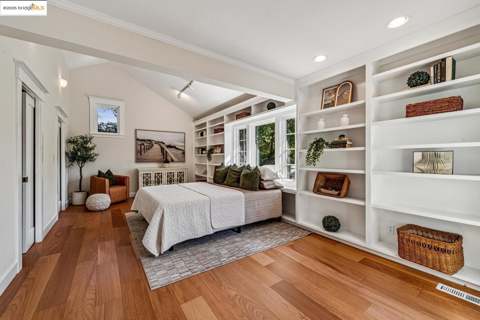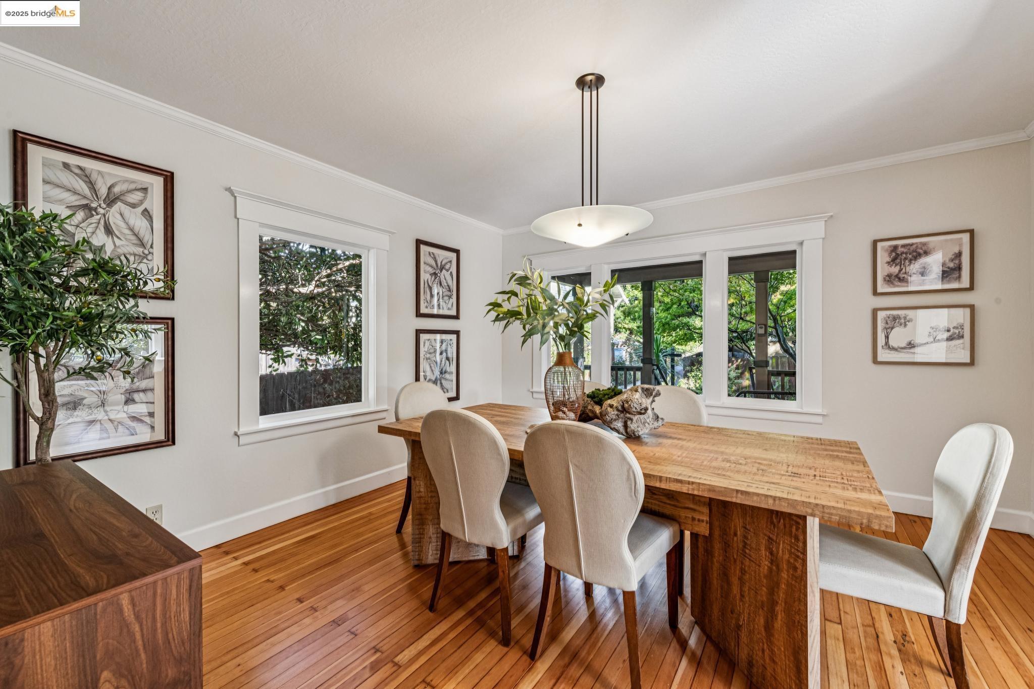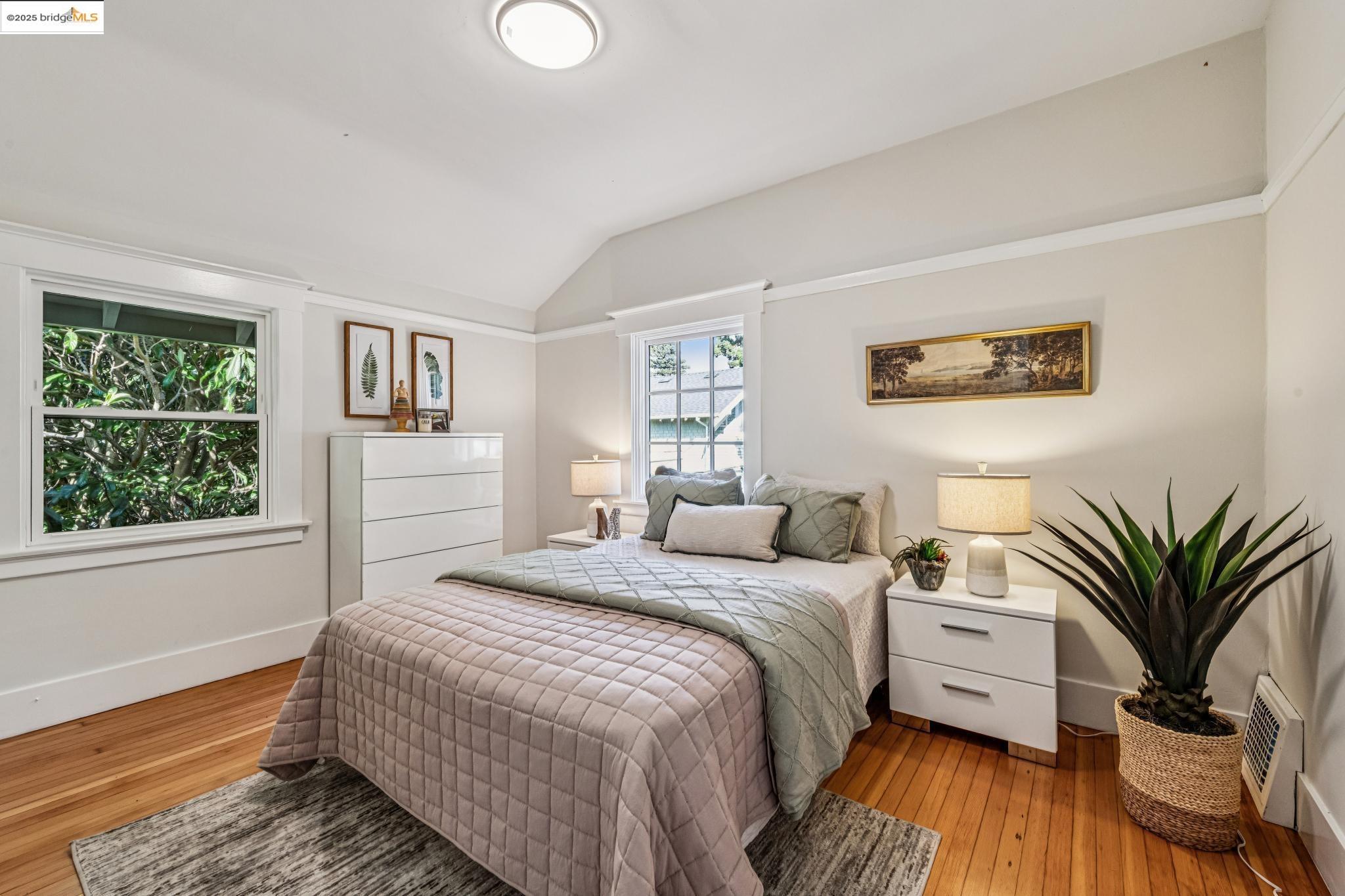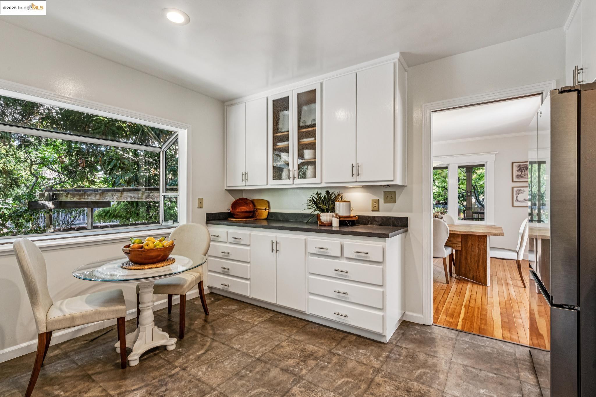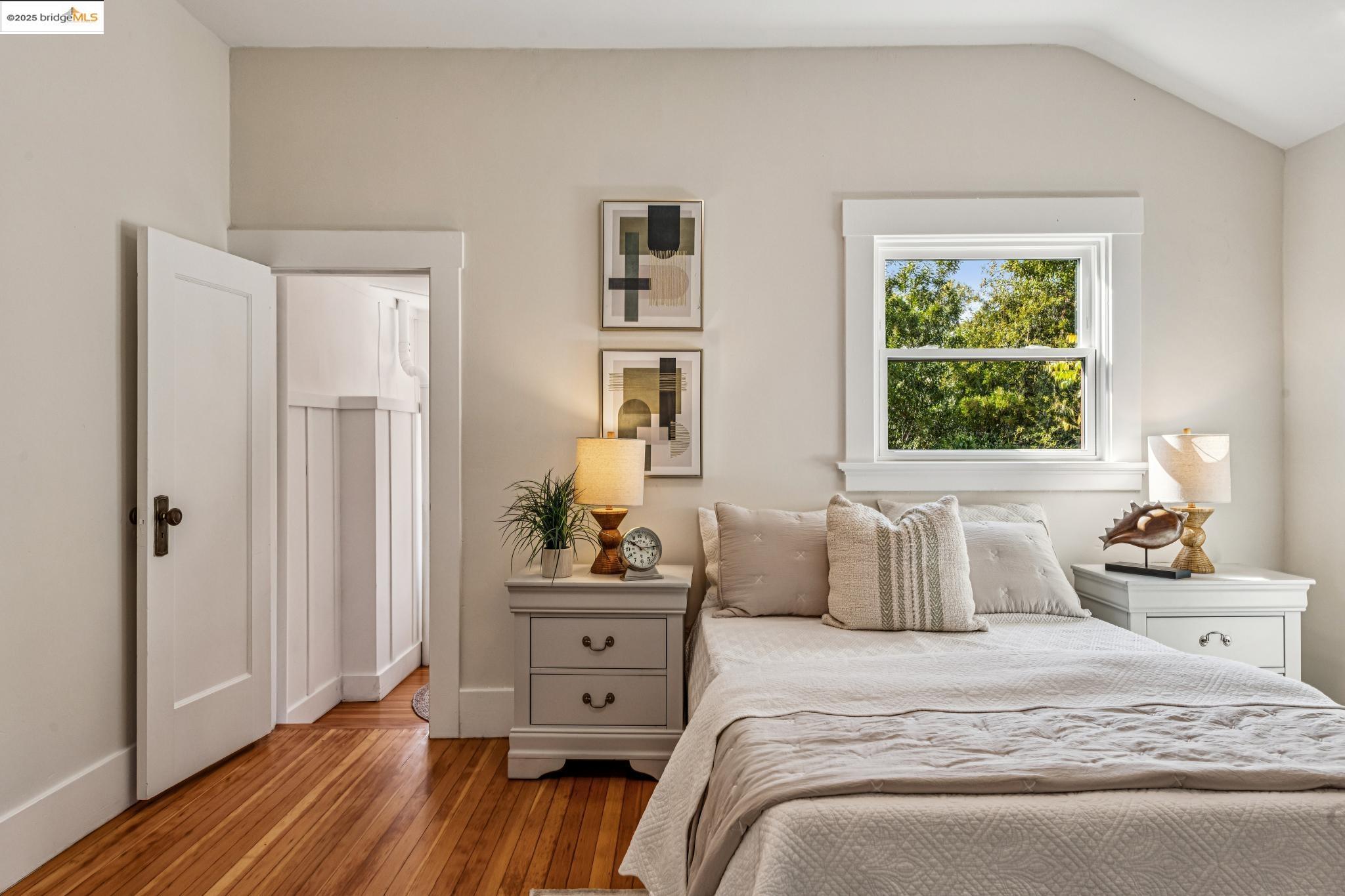 1296 Monterey Ave isn't the kind of place you notice right away. It's tucked back behind another house, almost like it wants to stay a little hidden. That's part of the charm--once you find it, you feel like you've discovered a little retreat. A creek runs nearby, adding just enough of that calming background sound to remind you nature is close, even in the middle of Berkeley. The living room is bright and spacious, with doors that open out onto a deck that feels like it's perched in the trees. Surrounded by greenery and overlooking the creek, it's the kind of spot where mornings start slow with coffee and evenings stretch long with friends. The 3 spacious upstairs bedrooms all have their own personality. One of them has this little nook that works just as well for a desk as it does for a play space. In addition there's a bonus room with wood paneling that feels like it's been there forever--warm, cozy, and perfect for late-night projects or curling up with a book. Downstairs, there's a huge bedroom with a half bath that could easily be turned into a roomy primary suite if you wanted. And while the house feels private, you're just a short stroll from Hopkins Street with its bakeries, markets, and cafes. It's that perfect balance of privacy and convenience.