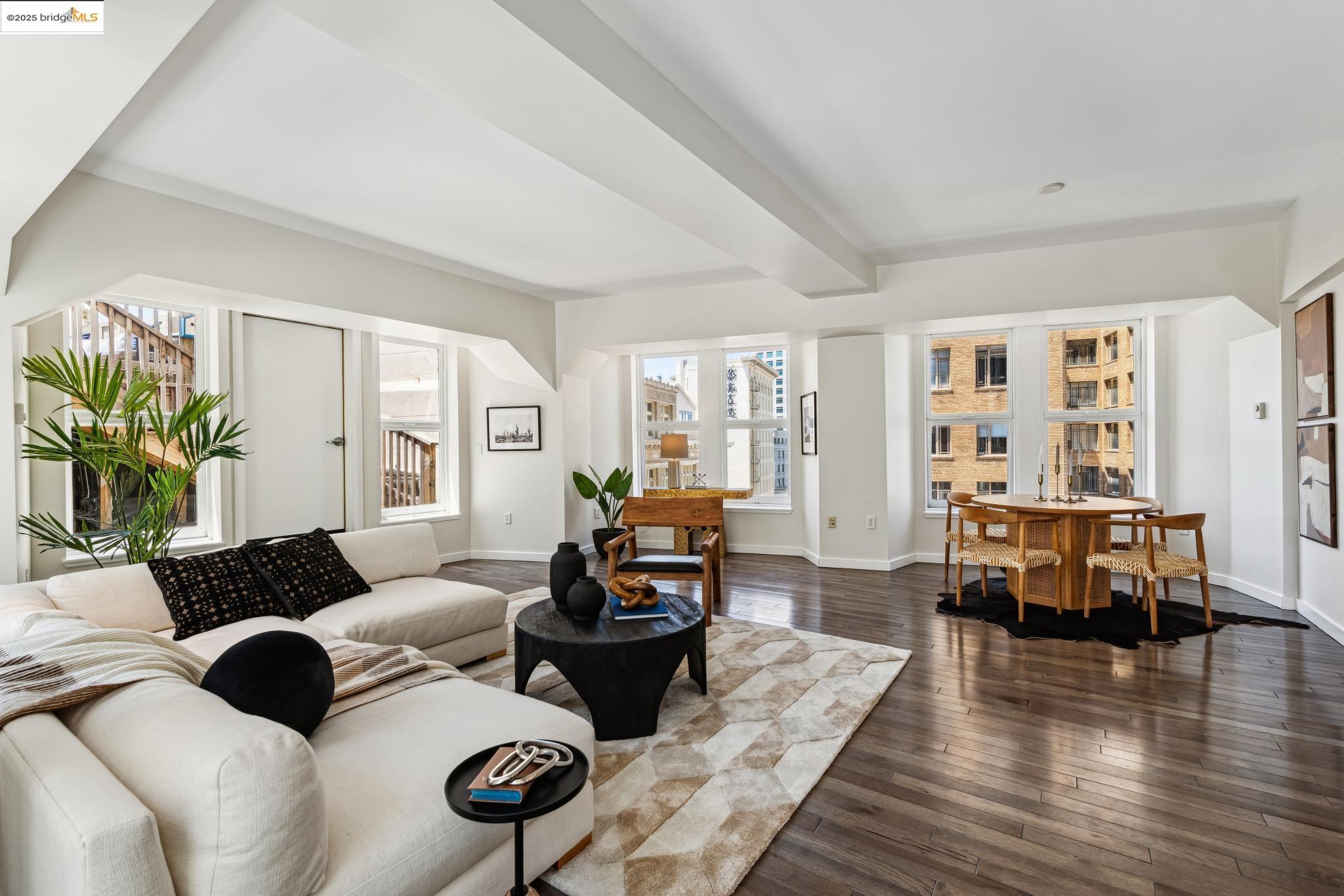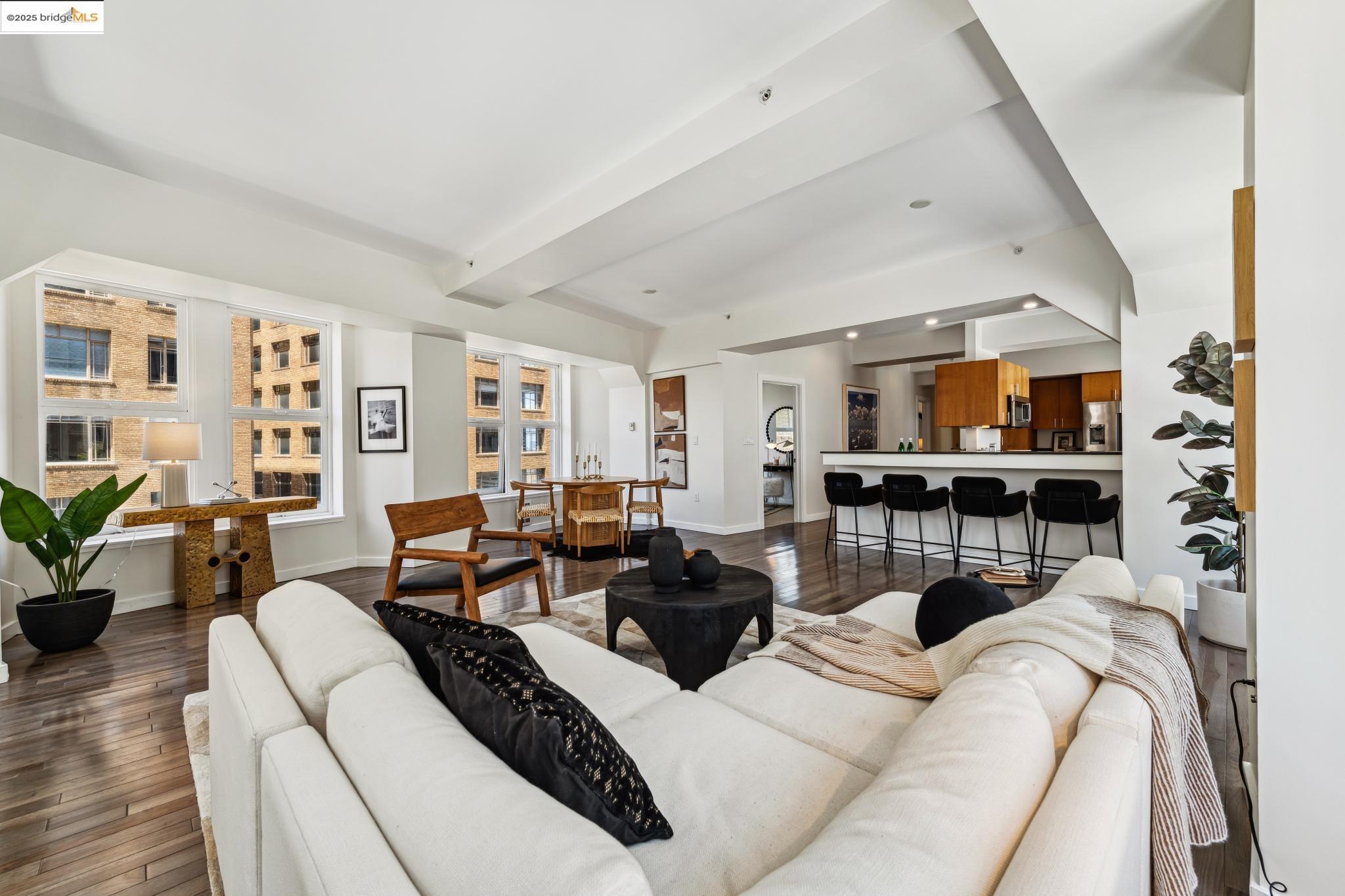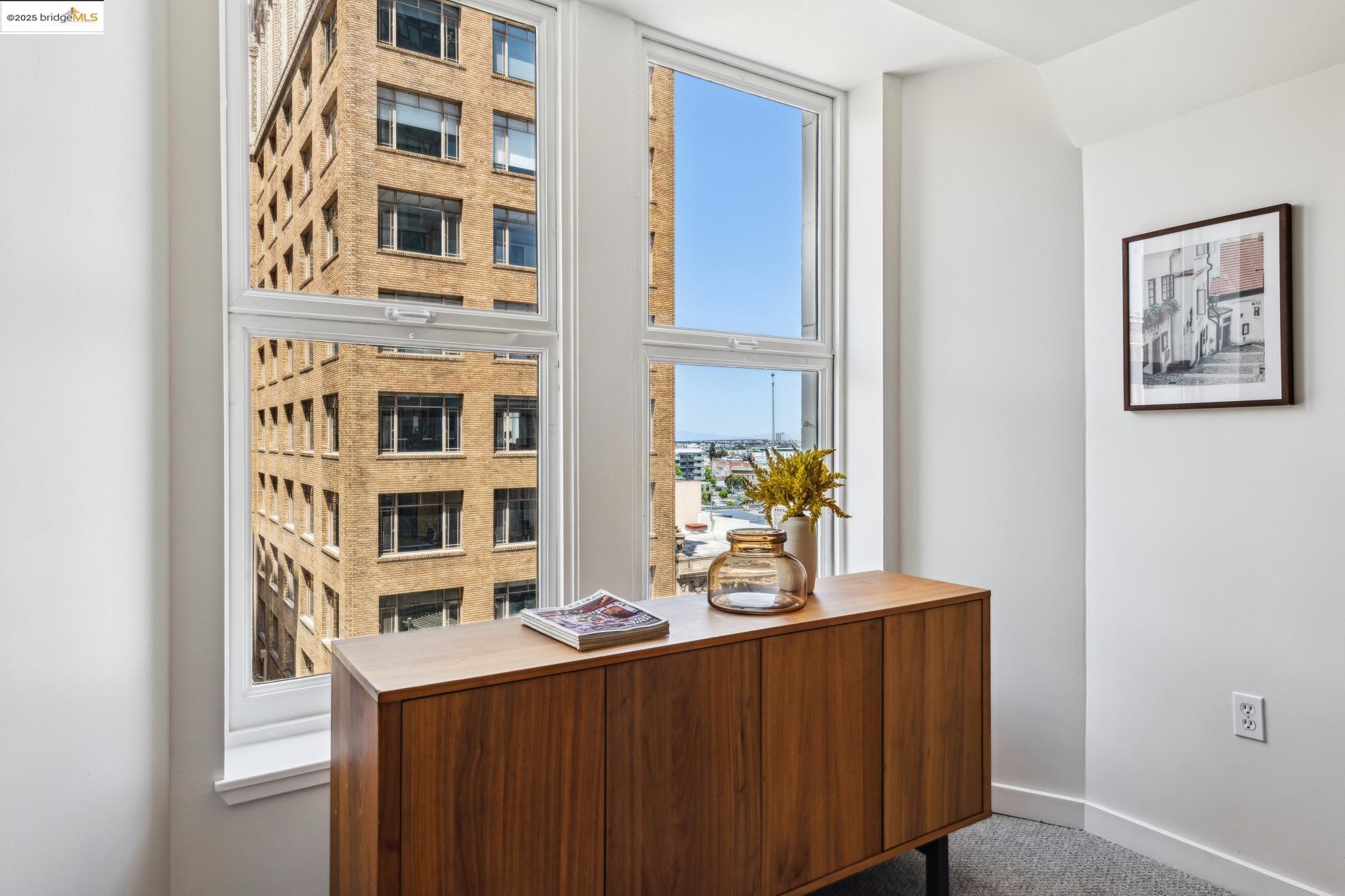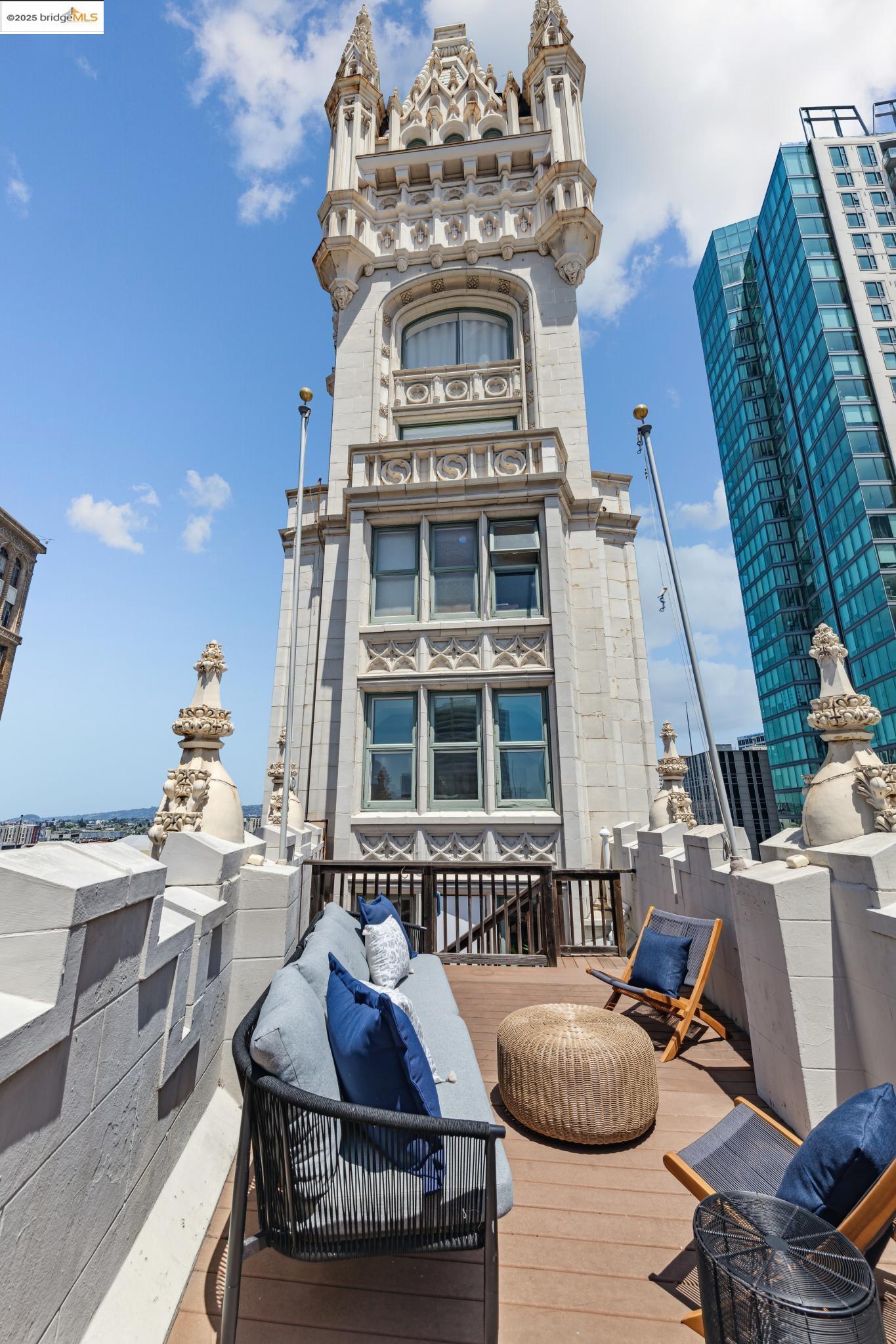 Nestled within the historic Cathedral Building, Unit 8 at 1615 Broadway, Oakland, CA, offers a rare opportunity to reside in a piece of architectural grandeur. Designed by Benjamin Geer McDougall and completed in 1914, the Gothic Revival-style skyscraper is a landmark masterpiece, known for its iconic triangular form that graces the bustling intersection of Broadway and Telegraph Avenue. Encompassing a generous 1,906 square feet, this exquisite residence presents three elegantly appointed bedrooms and two luxurious bathrooms, perfectly blending classic charm with modern comforts. The expansive living spaces boast high ceilings and large windows, inviting an abundance of natural light and showcasing views of the vibrant Uptown Oakland.The Cathedral Building, a National Register of Historic Places and an Oakland Landmark, has been lovingly preserved and thoughtfully updated. Residents enjoy the convenience of in-unit laundry and a full-sized kitchen, enhancing the ease of daily living. Beyond its doors, the building is situated in the heart of Uptown, an eclectic neighborhood brimming with cultural vitality, offering a myriad of dining, shopping, and entertainment options.