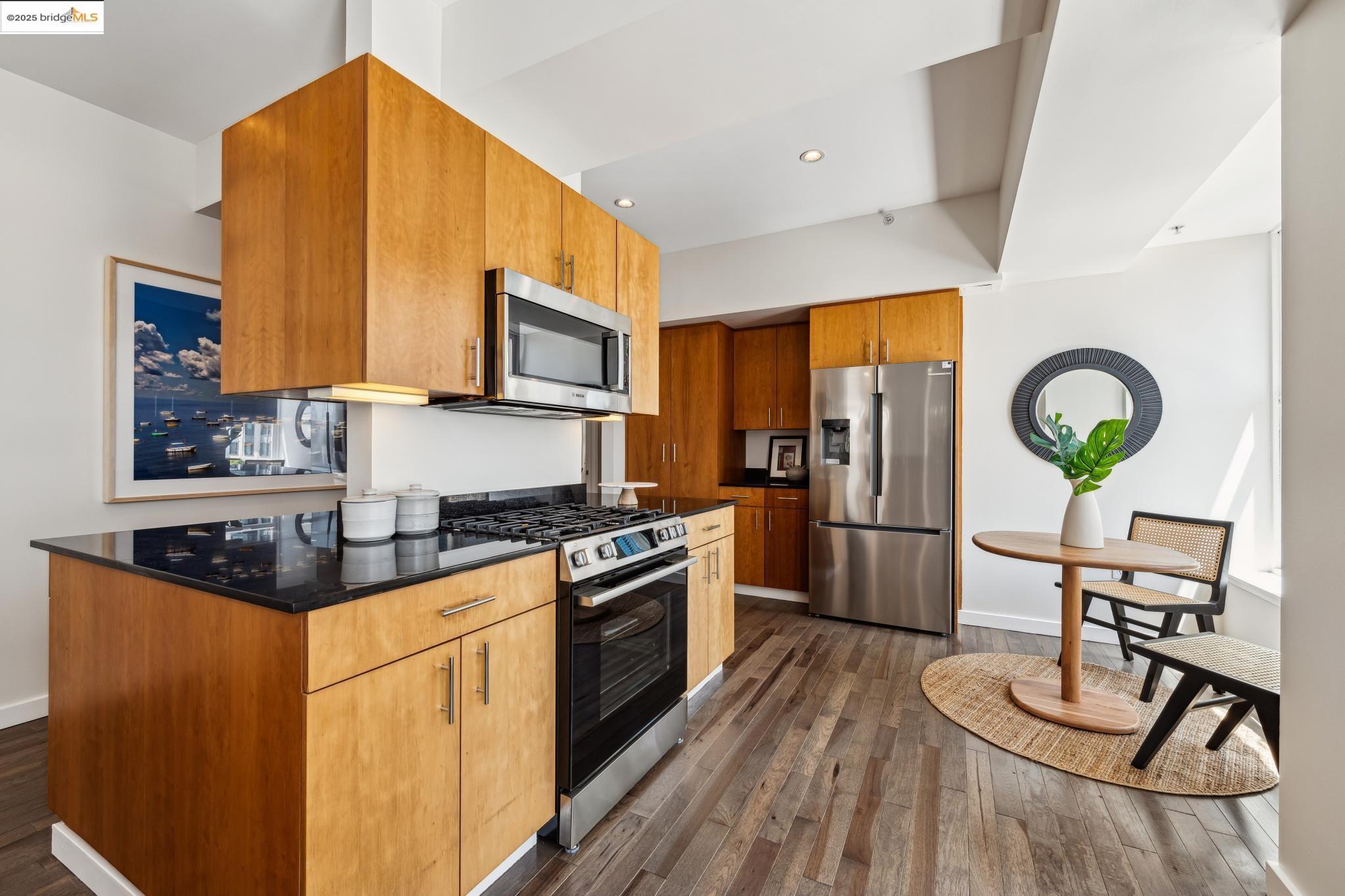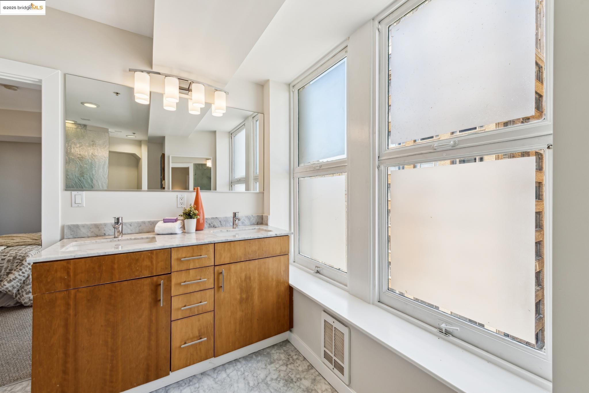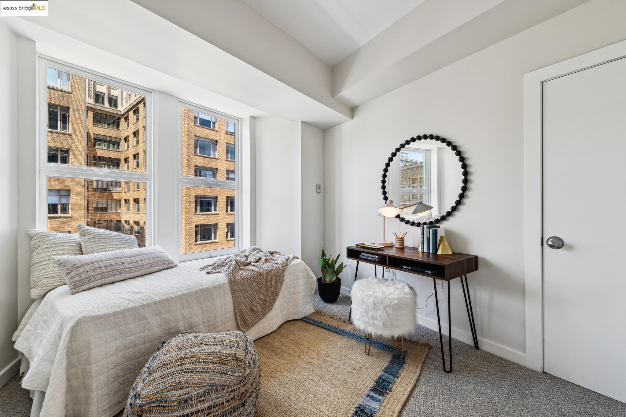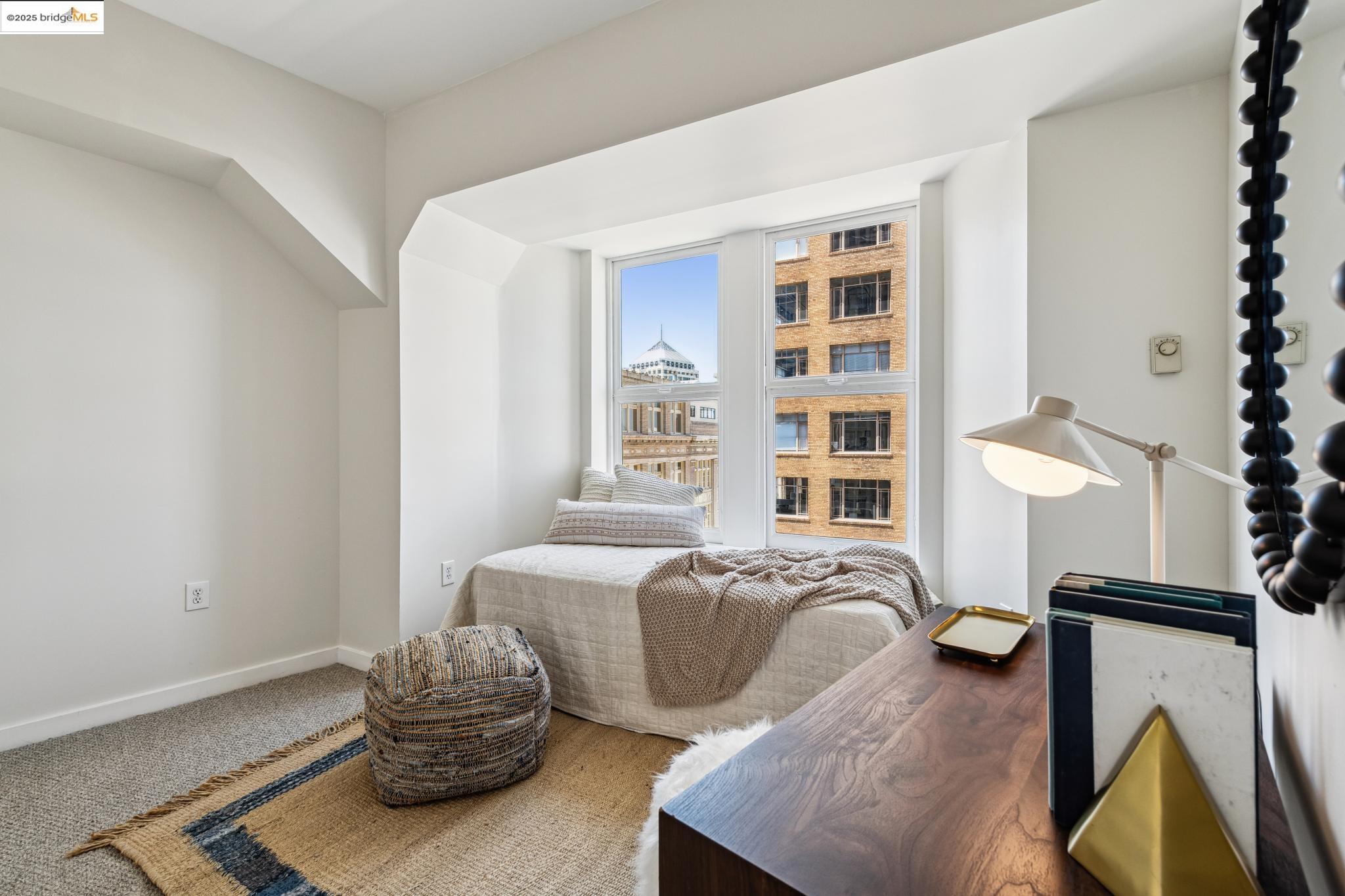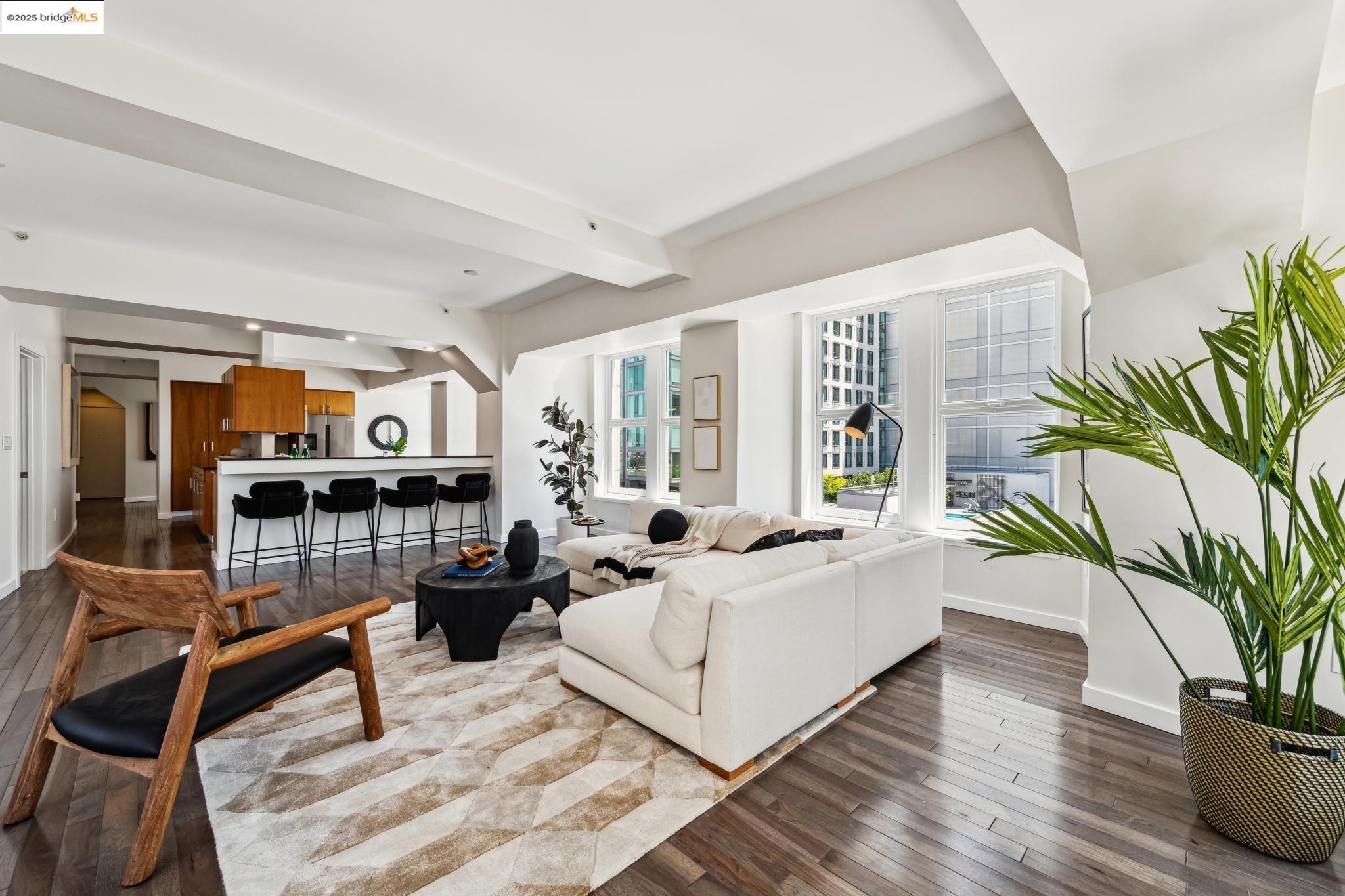 Nestled within the historic Cathedral Building, Unit 8 at 1615 Broadway, Oakland, CA, offers a rare opportunity to reside in a piece of architectural grandeur. Designed by Benjamin Geer McDougall and completed in 1914, the Gothic Revival-style skyscraper is a landmark masterpiece, known for its iconic triangular form that graces the bustling intersection of Broadway and Telegraph Avenue. Encompassing a generous 1,906 square feet, this exquisite residence presents three elegantly appointed bedrooms and two luxurious bathrooms, perfectly blending classic charm with modern comforts. The expansive living spaces boast high ceilings and large windows, inviting an abundance of natural light and showcasing views of the vibrant Uptown Oakland.The Cathedral Building, a National Register of Historic Places and an Oakland Landmark, has been lovingly preserved and thoughtfully updated. Residents enjoy the convenience of in-unit laundry and a full-sized kitchen, enhancing the ease of daily living. Beyond its doors, the building is situated in the heart of Uptown, an eclectic neighborhood brimming with cultural vitality, offering a myriad of dining, shopping, and entertainment options.