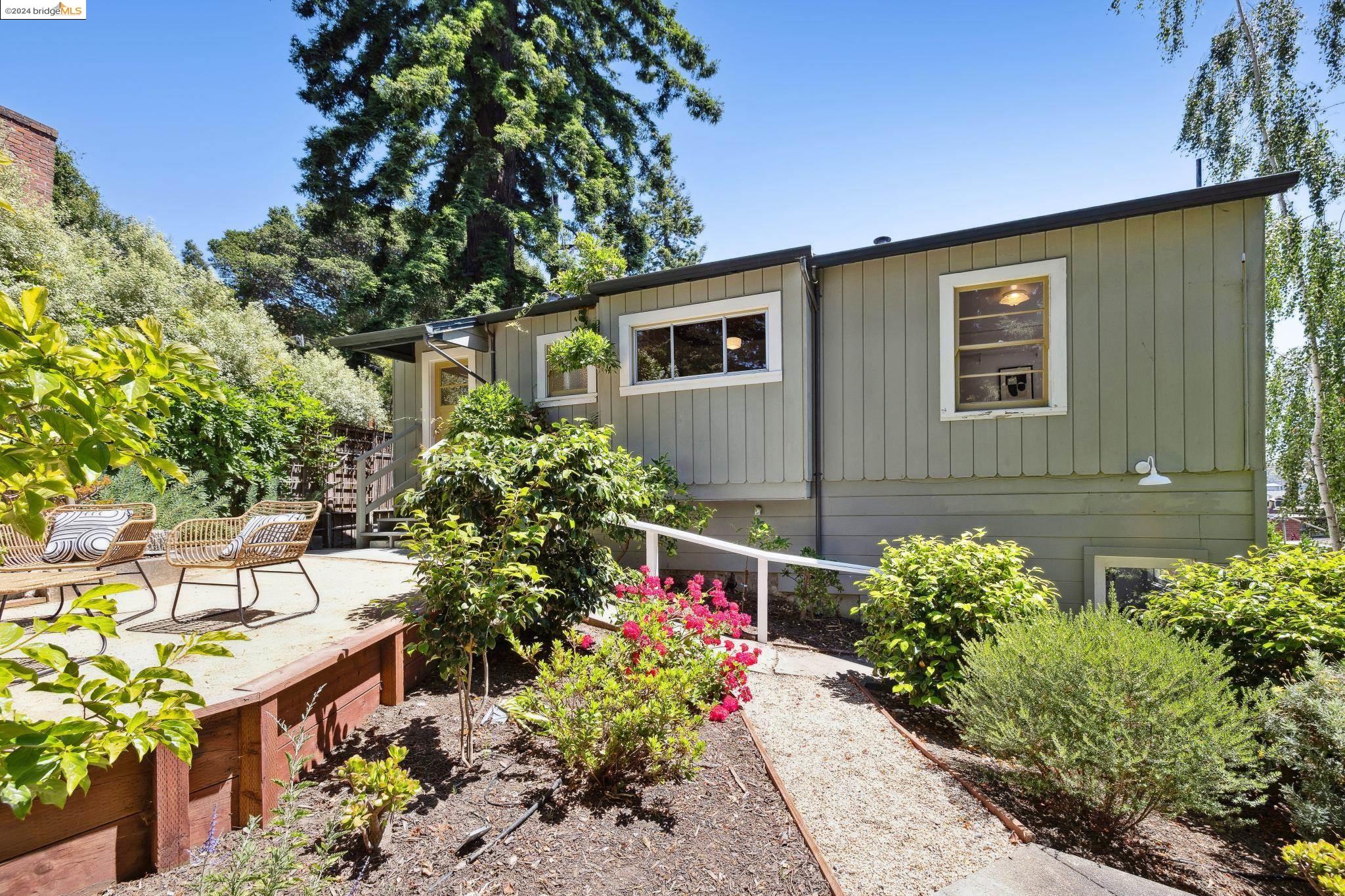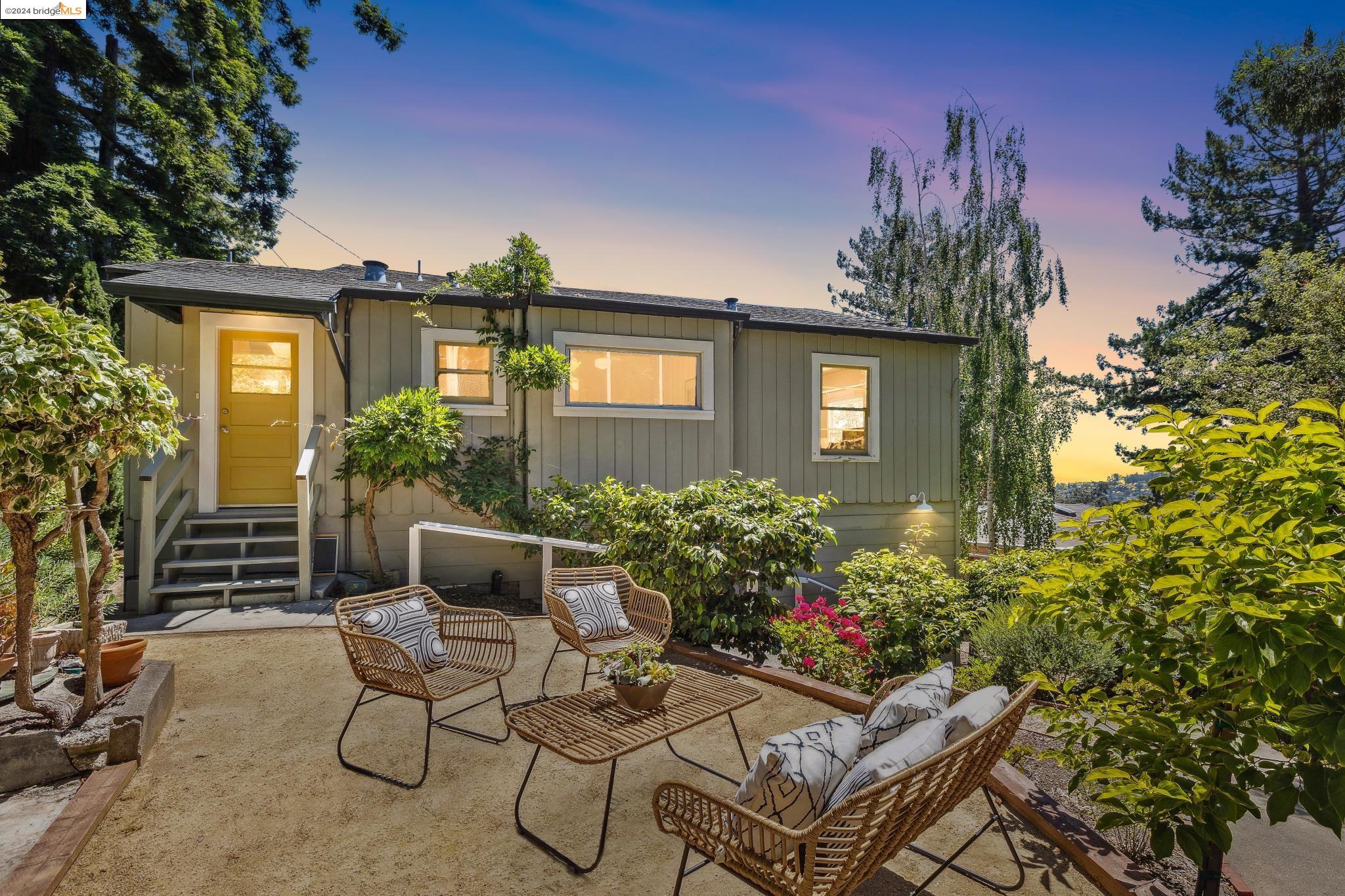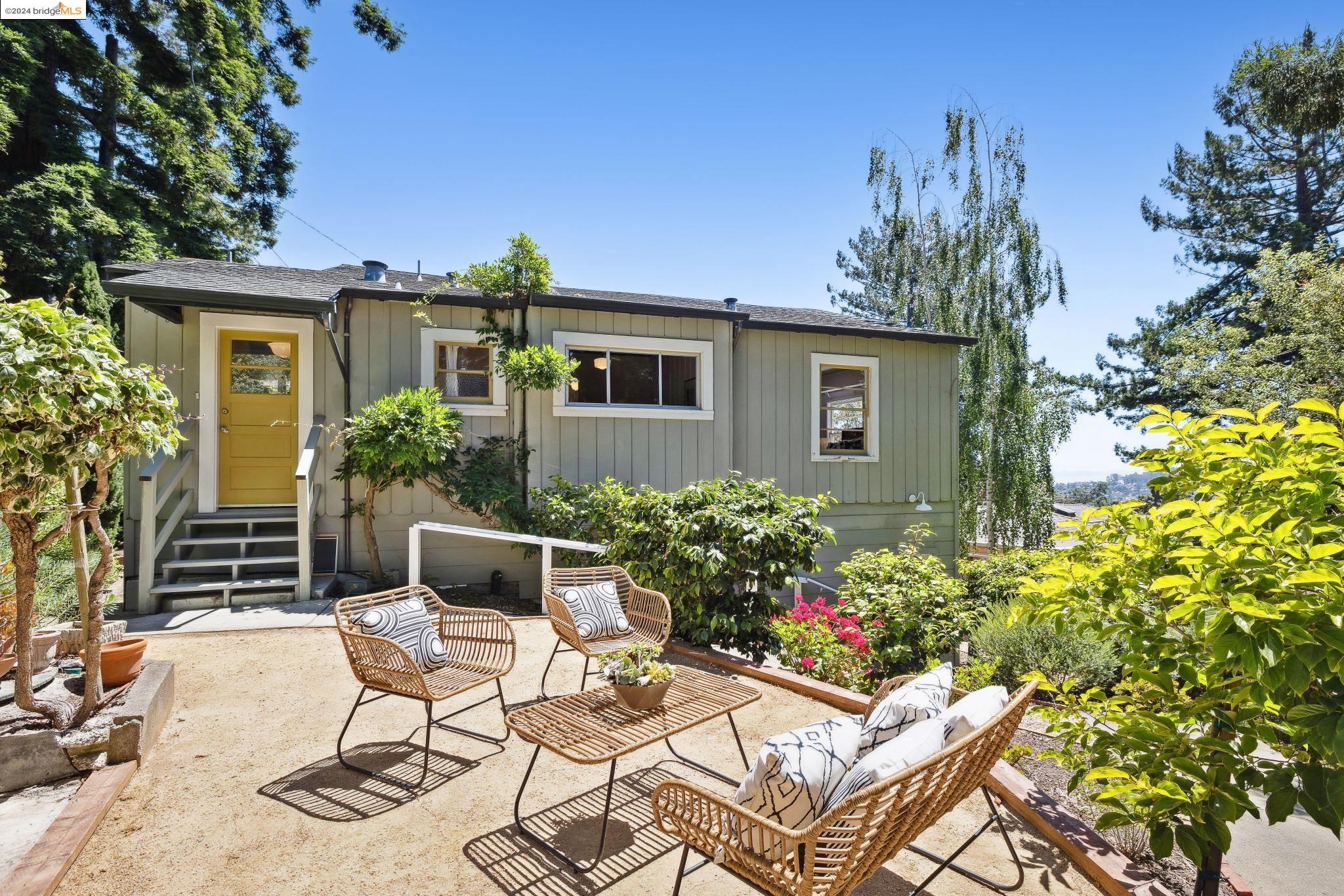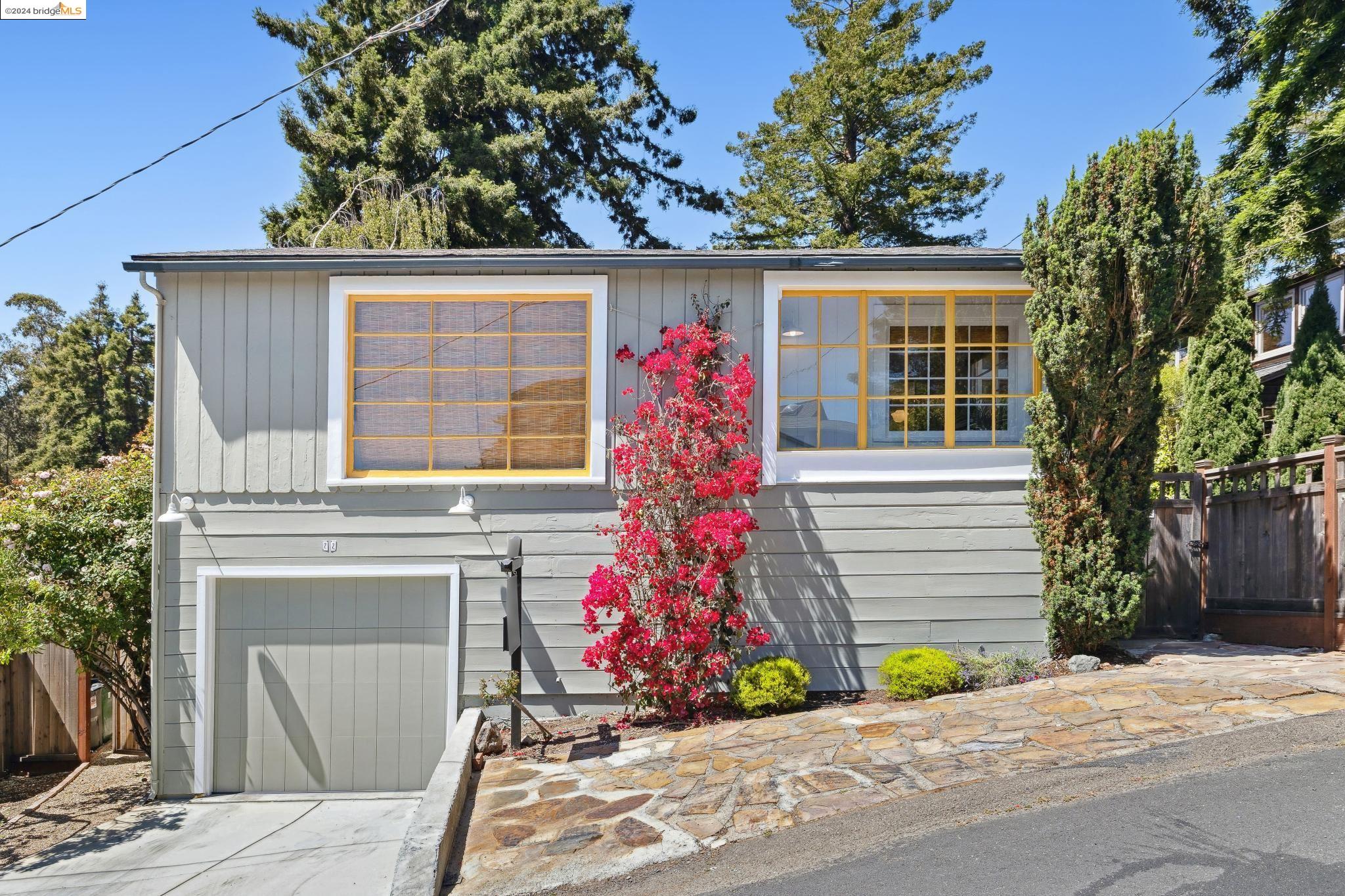 Welcome to 22 Avon Road, an enchanting retreat nestled in the heart of the delightful Kensington Hills. This charming home features 2 bedrooms and 1 bathroom, with stunning Bay views from the living room. The many large windows take full advantage of those beautiful views. The expansive living and dining room combination, complete with a cozy fireplace, built-in bookcase and beamed ceilings creates an inviting ambiance ideal for both relaxation and entertaining. Down the hall, you'll be captivated by the beautifully upgraded kitchen with antique stove, light fixtures and lovely checkerboard marmoleum floors. A built-in desk offers a perfect office area. Modern amenities seamlessly combine with classic charm. The main bedroom boasts more of the breathtaking Bay and bridge views, while the second bedroom provides a cozy refuge with a walk-in closet and wood clad ceiling. Important to note that the property includes community board approved plans for a lower-level ADU, presenting an excellent opportunity for customization and expansion, and there is a separate entrance to the space if desired. Step outside to a private oasis adorned with mature trees and vibrant professionally designed landscaping, perfect for enjoying the outdoors in tranquility.