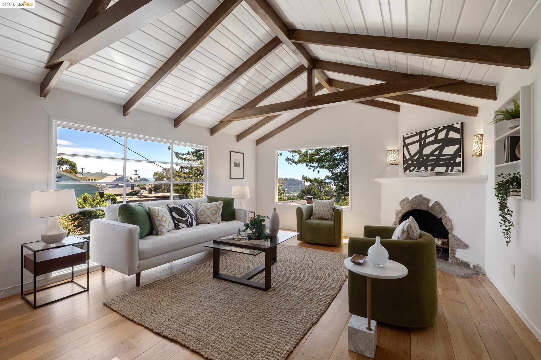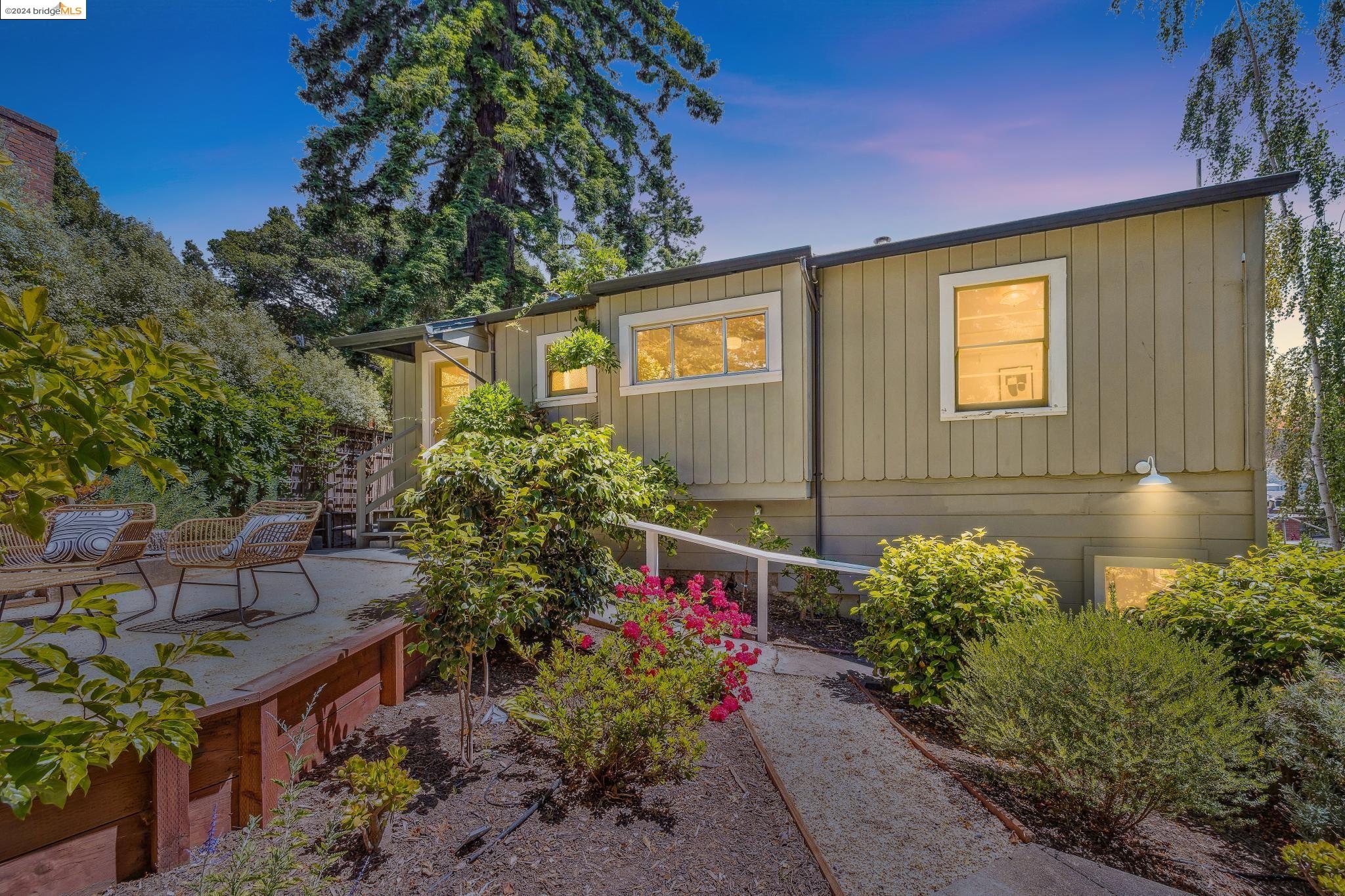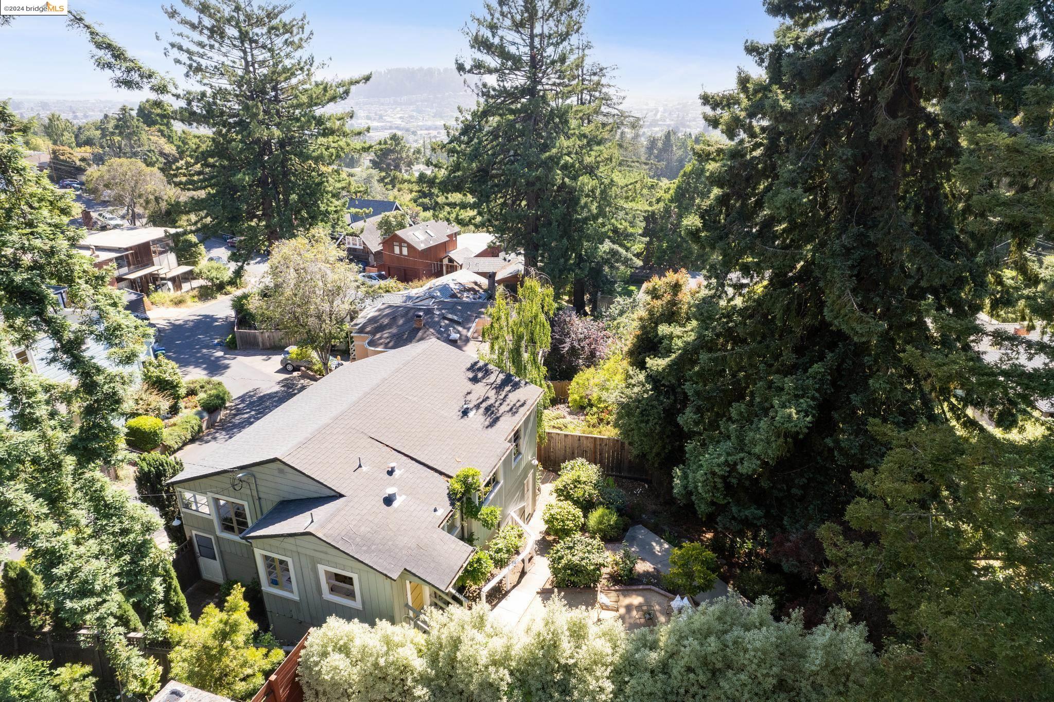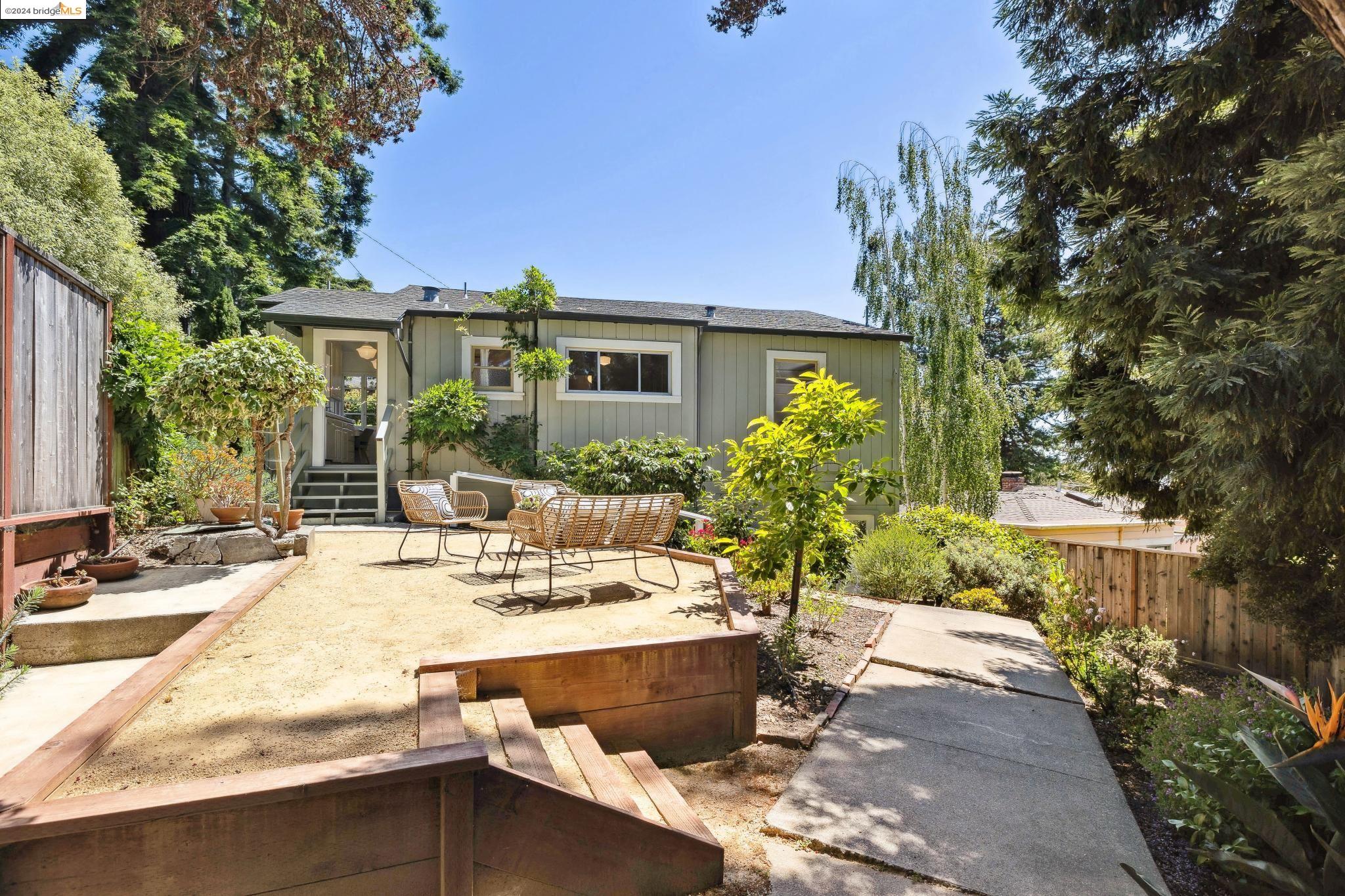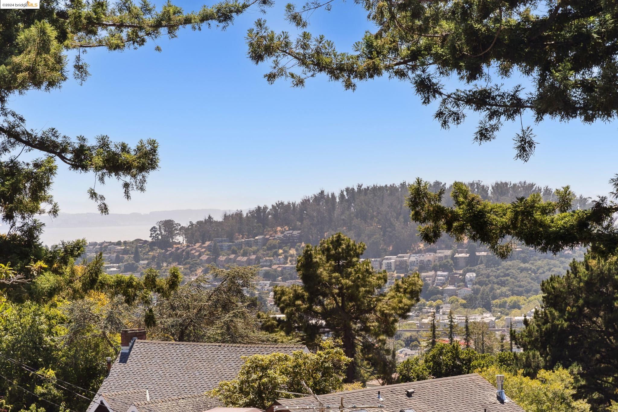 Welcome to 22 Avon Road, an enchanting retreat nestled in the heart of the delightful Kensington Hills. This charming home features 2 bedrooms and 1 bathroom, with stunning Bay views from the living room. The many large windows take full advantage of those beautiful views. The expansive living and dining room combination, complete with a cozy fireplace, built-in bookcase and beamed ceilings creates an inviting ambiance ideal for both relaxation and entertaining. Down the hall, you'll be captivated by the beautifully upgraded kitchen with antique stove, light fixtures and lovely checkerboard marmoleum floors. A built-in desk offers a perfect office area. Modern amenities seamlessly combine with classic charm. The main bedroom boasts more of the breathtaking Bay and bridge views, while the second bedroom provides a cozy refuge with a walk-in closet and wood clad ceiling. Important to note that the property includes community board approved plans for a lower-level ADU, presenting an excellent opportunity for customization and expansion, and there is a separate entrance to the space if desired. Step outside to a private oasis adorned with mature trees and vibrant professionally designed landscaping, perfect for enjoying the outdoors in tranquility.