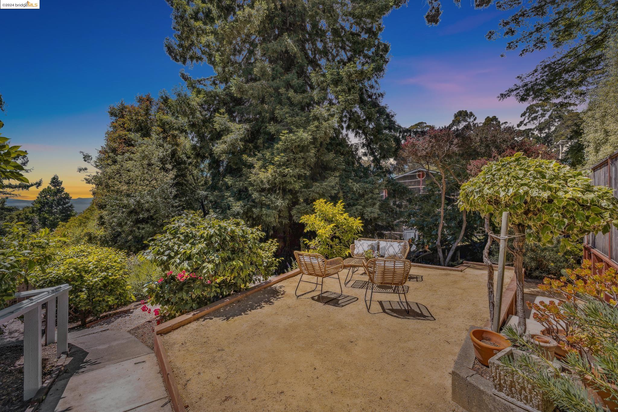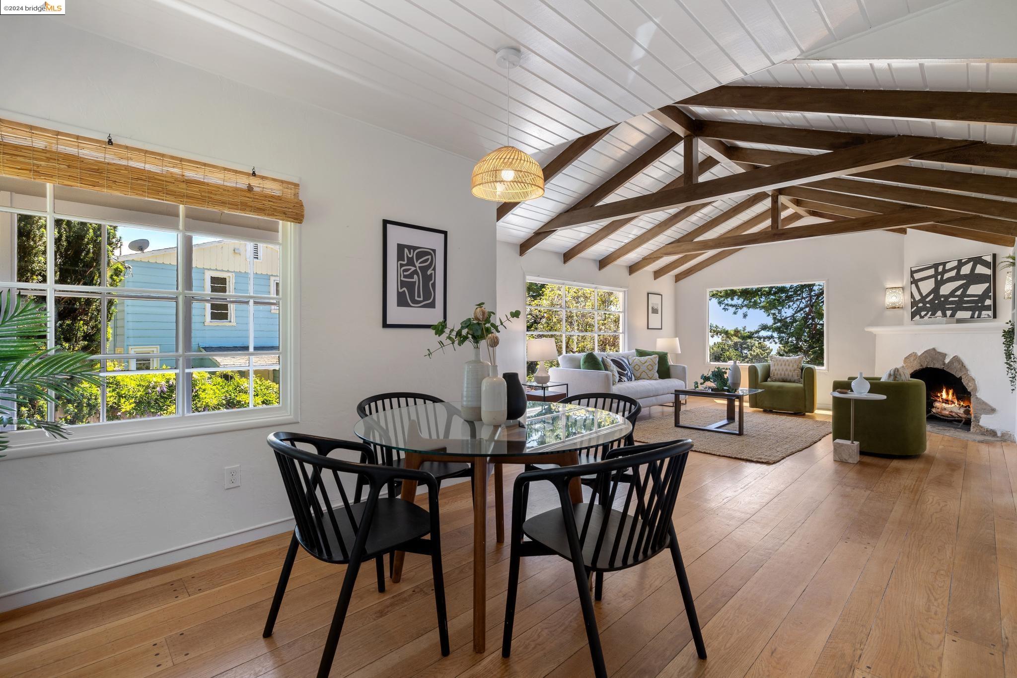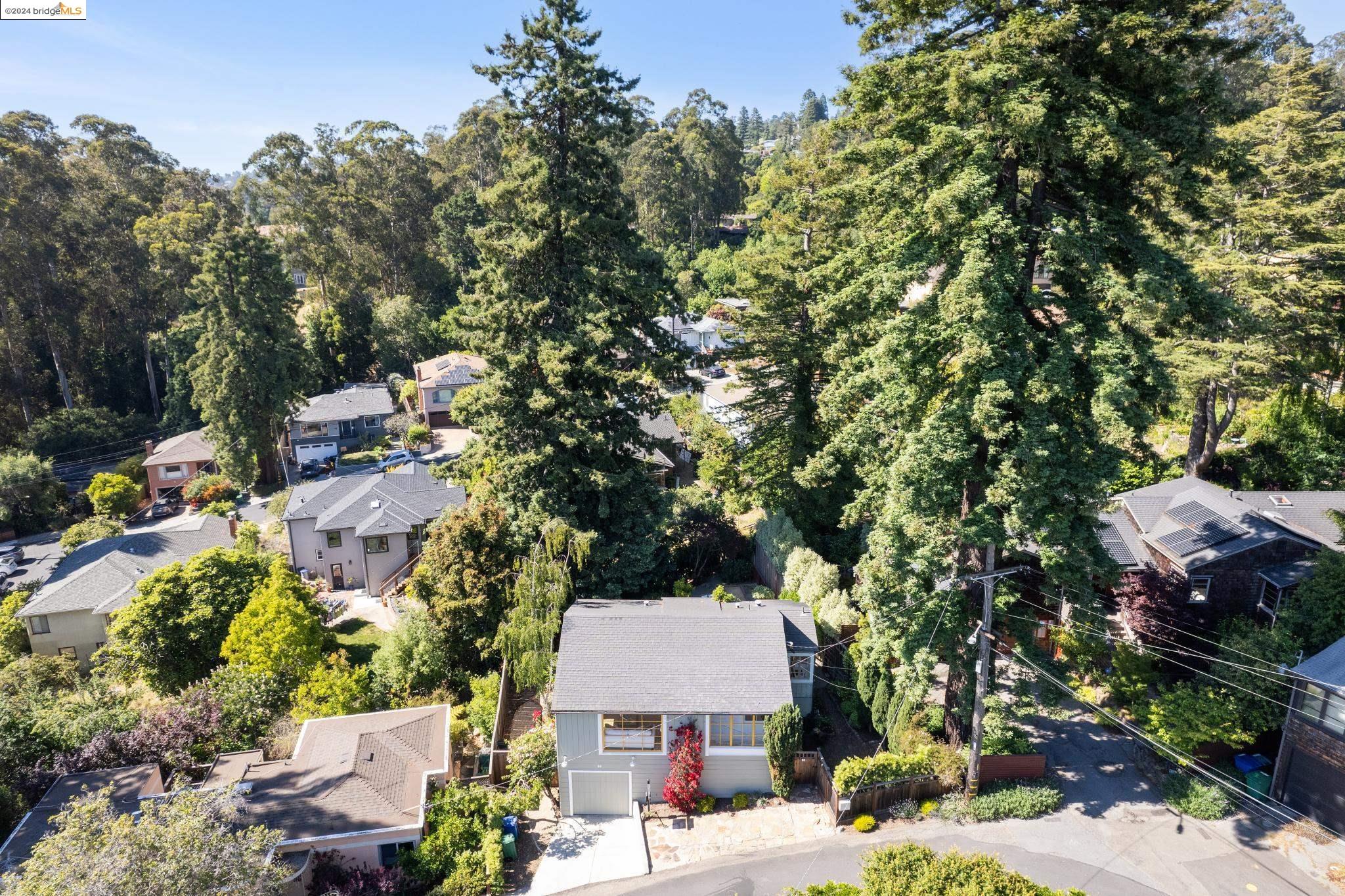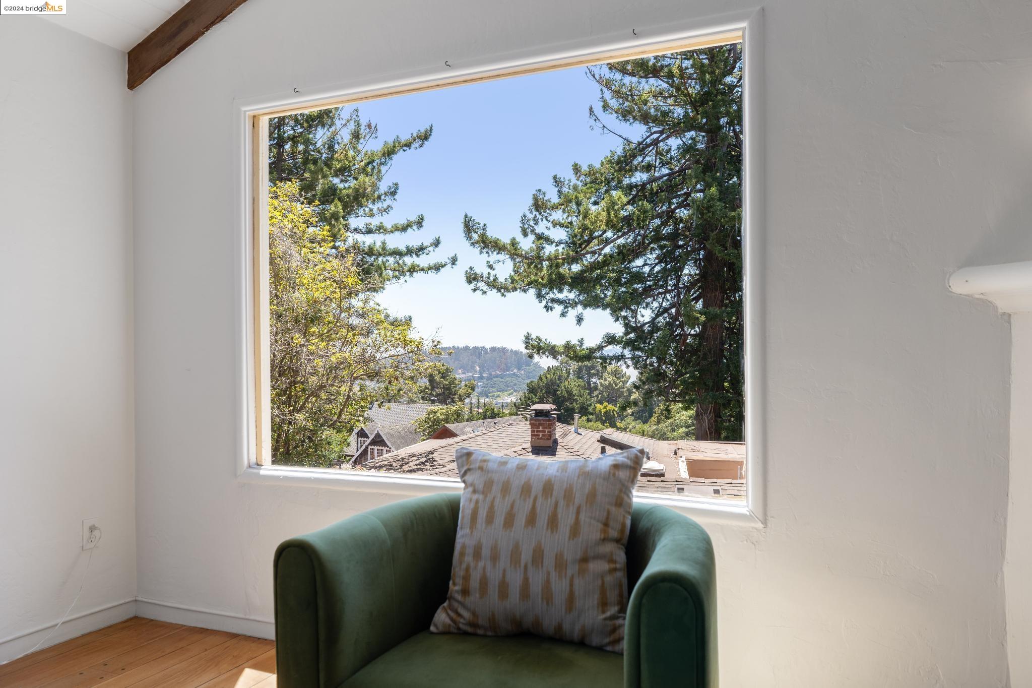 Welcome to 22 Avon Road, an enchanting retreat nestled in the heart of the delightful Kensington Hills. This charming home features 2 bedrooms and 1 bathroom, with stunning Bay views from the living room. The many large windows take full advantage of those beautiful views. The expansive living and dining room combination, complete with a cozy fireplace, built-in bookcase and beamed ceilings creates an inviting ambiance ideal for both relaxation and entertaining. Down the hall, you'll be captivated by the beautifully upgraded kitchen with antique stove, light fixtures and lovely checkerboard marmoleum floors. A built-in desk offers a perfect office area. Modern amenities seamlessly combine with classic charm. The main bedroom boasts more of the breathtaking Bay and bridge views, while the second bedroom provides a cozy refuge with a walk-in closet and wood clad ceiling. Important to note that the property includes community board approved plans for a lower-level ADU, presenting an excellent opportunity for customization and expansion, and there is a separate entrance to the space if desired. Step outside to a private oasis adorned with mature trees and vibrant professionally designed landscaping, perfect for enjoying the outdoors in tranquility.