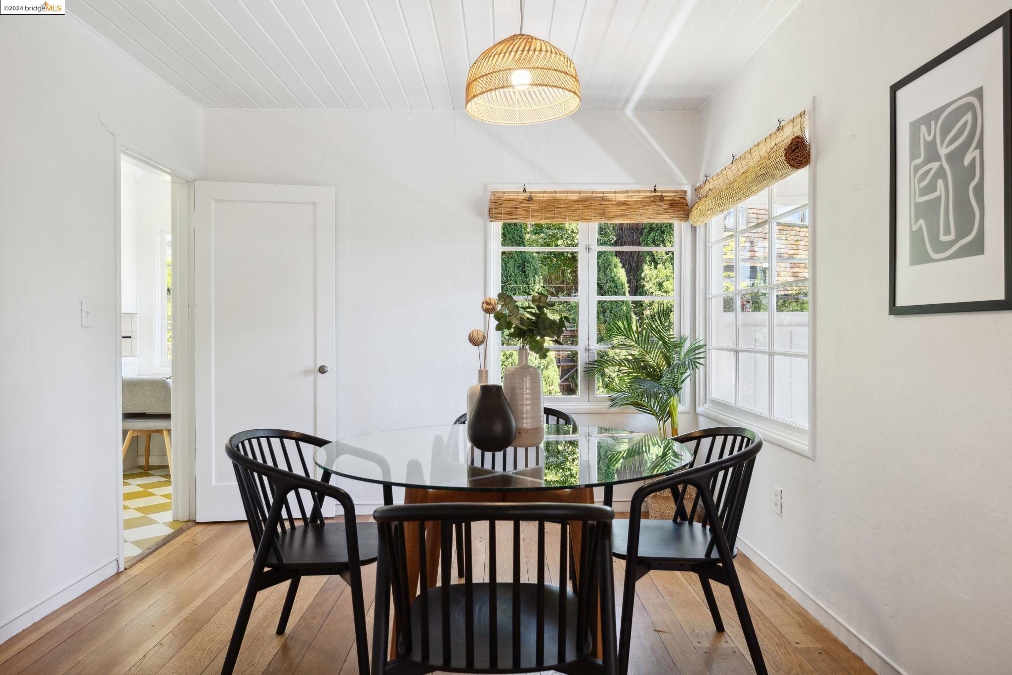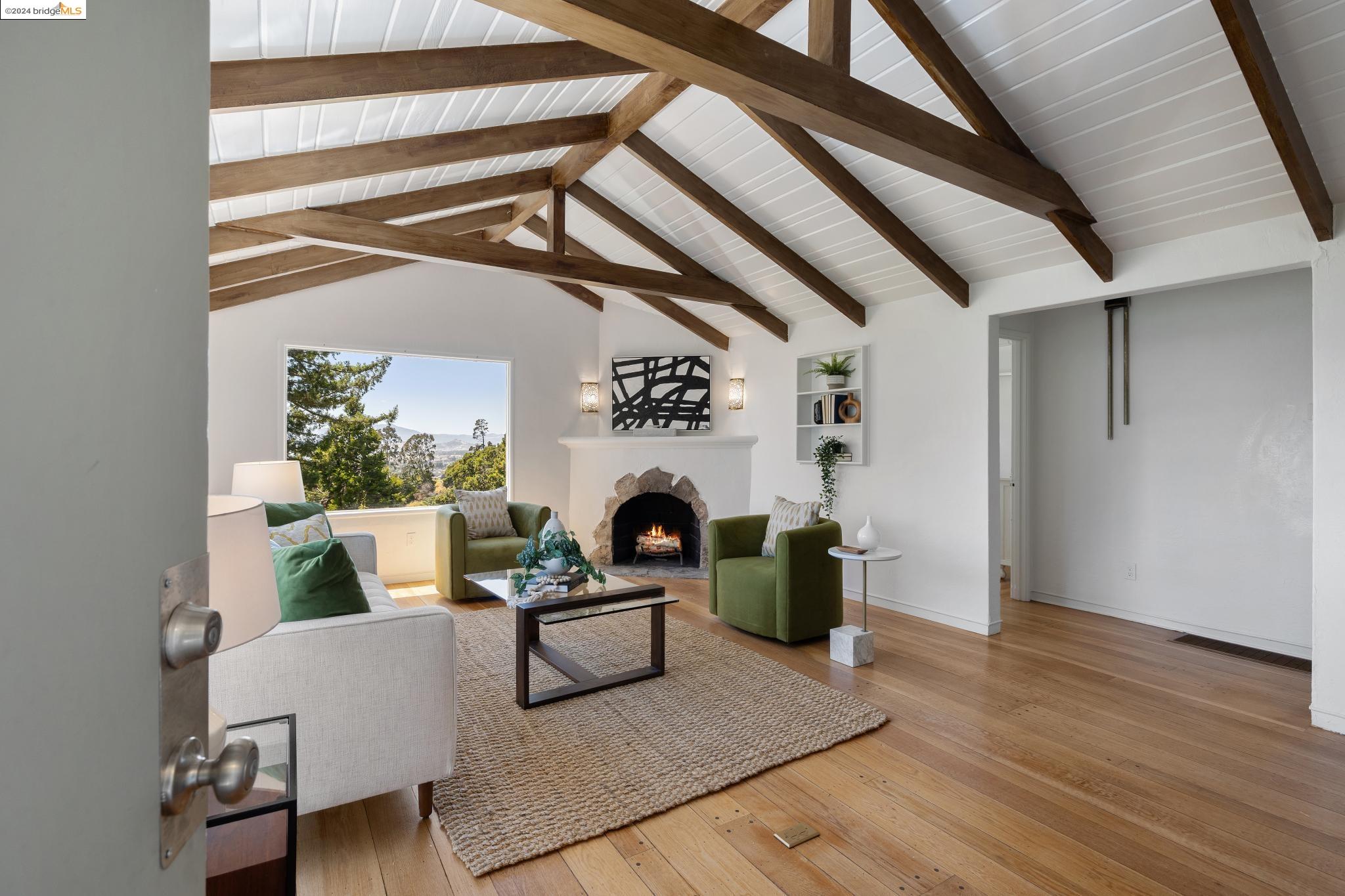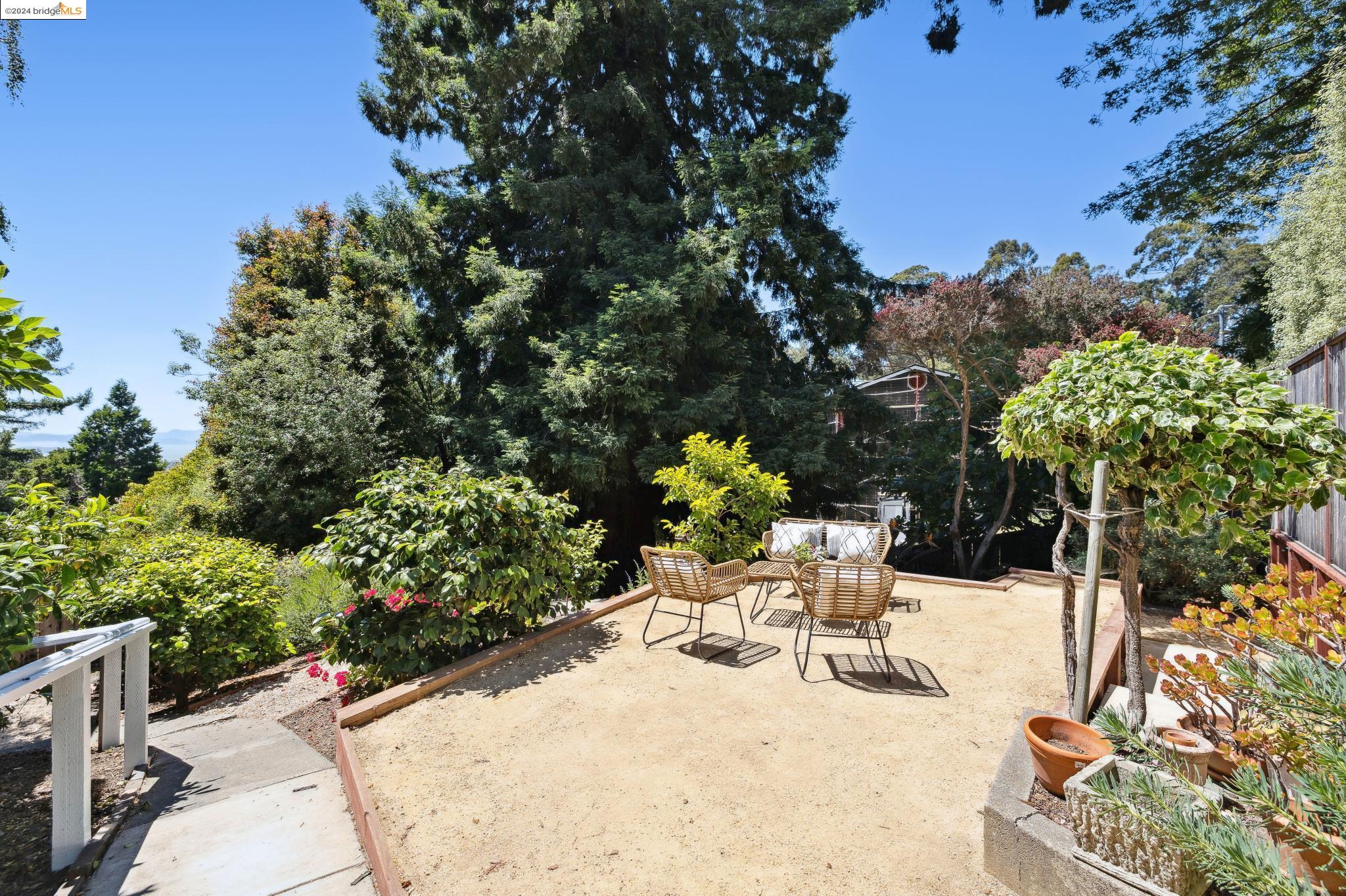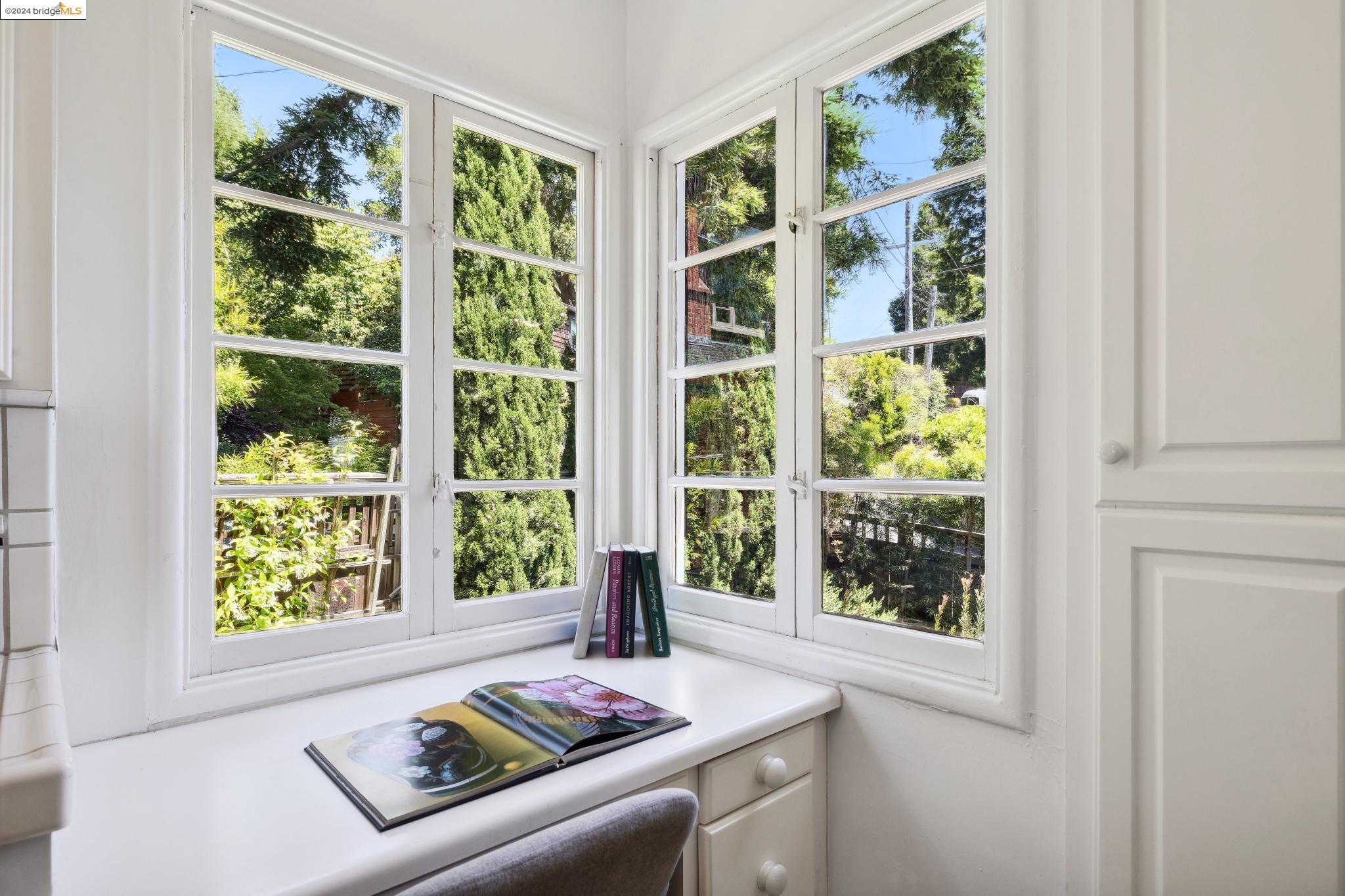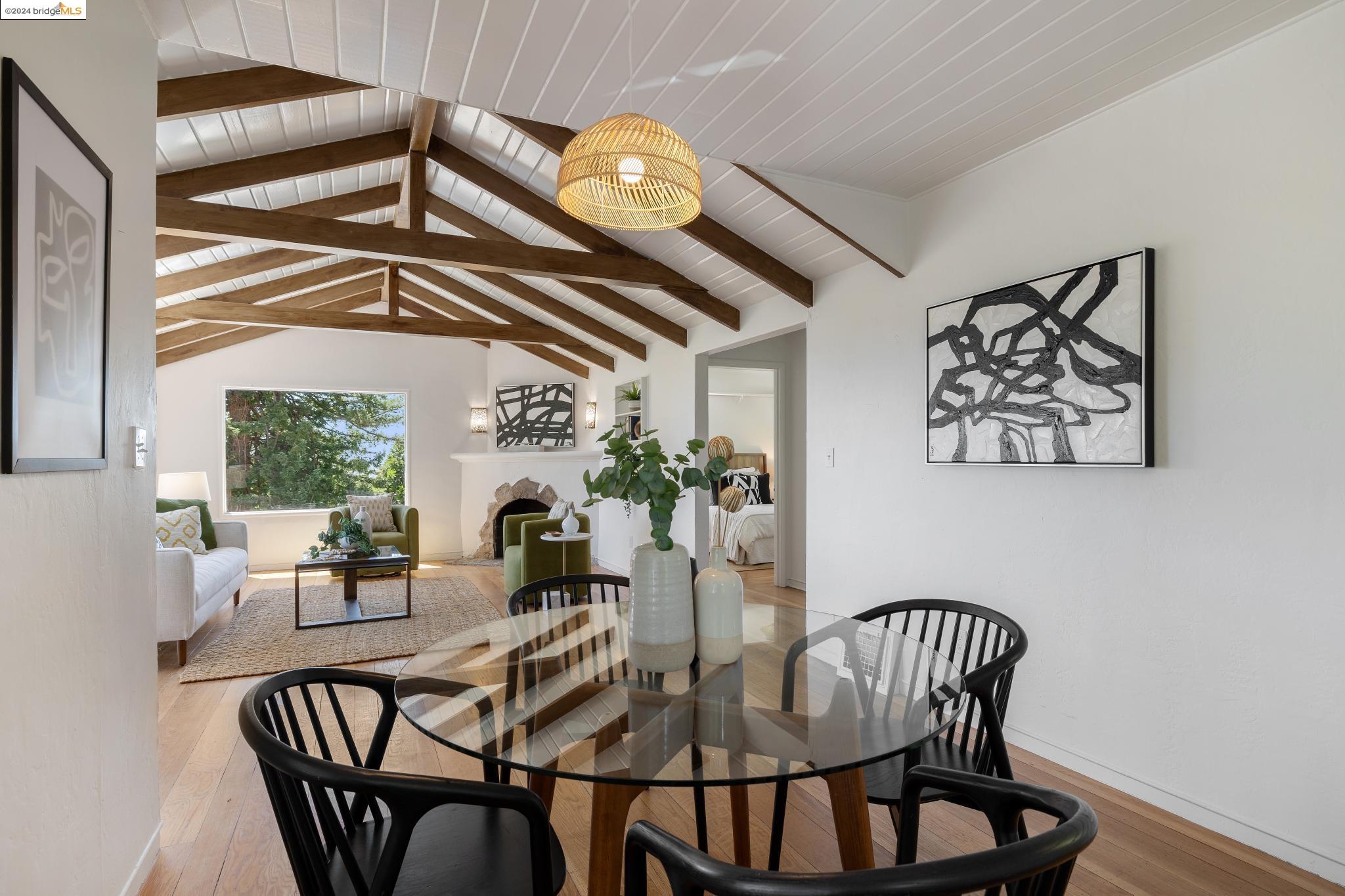 Welcome to 22 Avon Road, an enchanting retreat nestled in the heart of the delightful Kensington Hills. This charming home features 2 bedrooms and 1 bathroom, with stunning Bay views from the living room. The many large windows take full advantage of those beautiful views. The expansive living and dining room combination, complete with a cozy fireplace, built-in bookcase and beamed ceilings creates an inviting ambiance ideal for both relaxation and entertaining. Down the hall, you'll be captivated by the beautifully upgraded kitchen with antique stove, light fixtures and lovely checkerboard marmoleum floors. A built-in desk offers a perfect office area. Modern amenities seamlessly combine with classic charm. The main bedroom boasts more of the breathtaking Bay and bridge views, while the second bedroom provides a cozy refuge with a walk-in closet and wood clad ceiling. Important to note that the property includes community board approved plans for a lower-level ADU, presenting an excellent opportunity for customization and expansion, and there is a separate entrance to the space if desired. Step outside to a private oasis adorned with mature trees and vibrant professionally designed landscaping, perfect for enjoying the outdoors in tranquility.