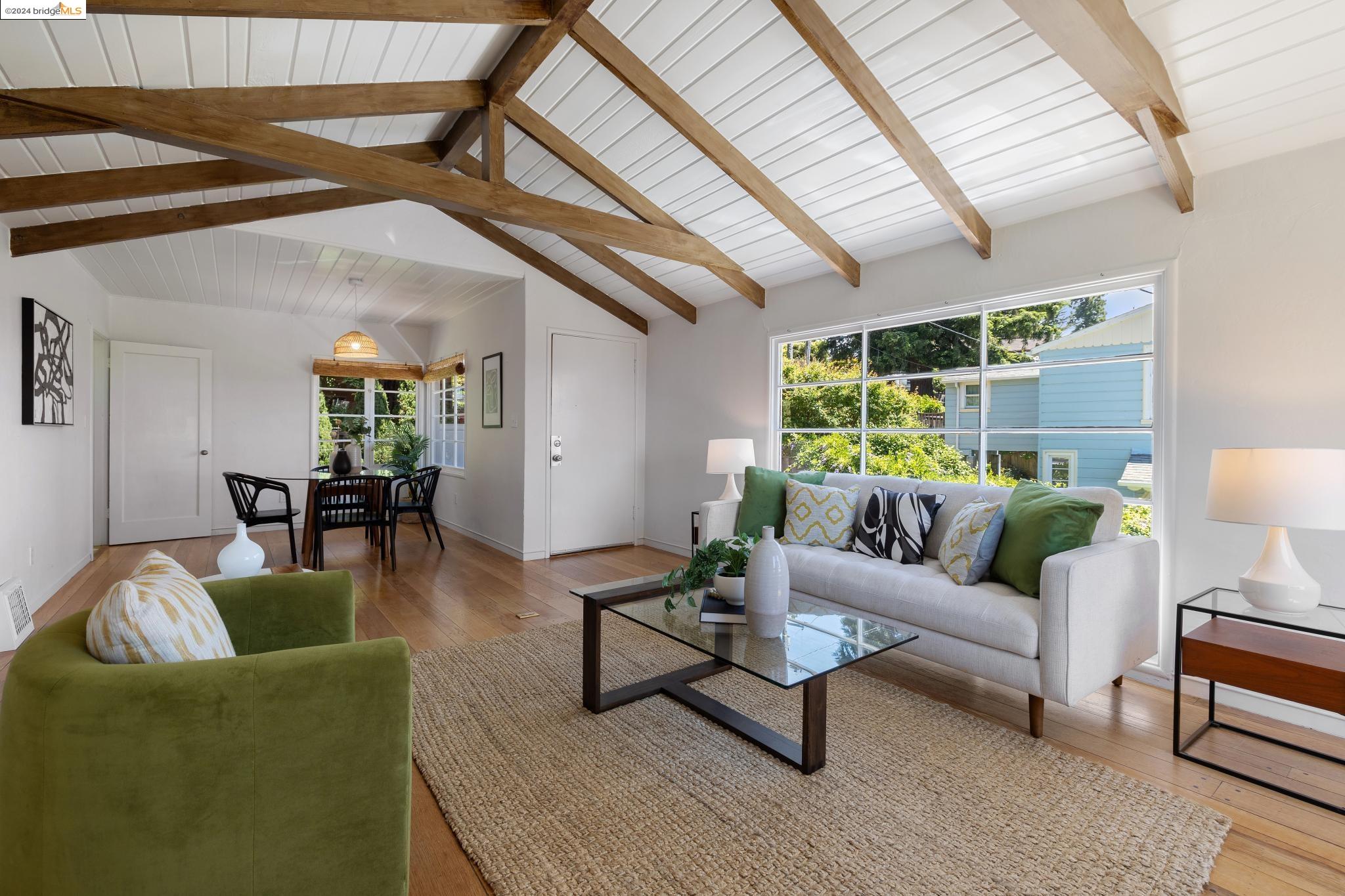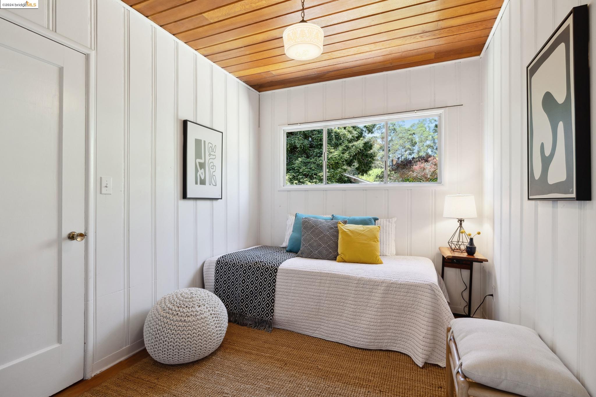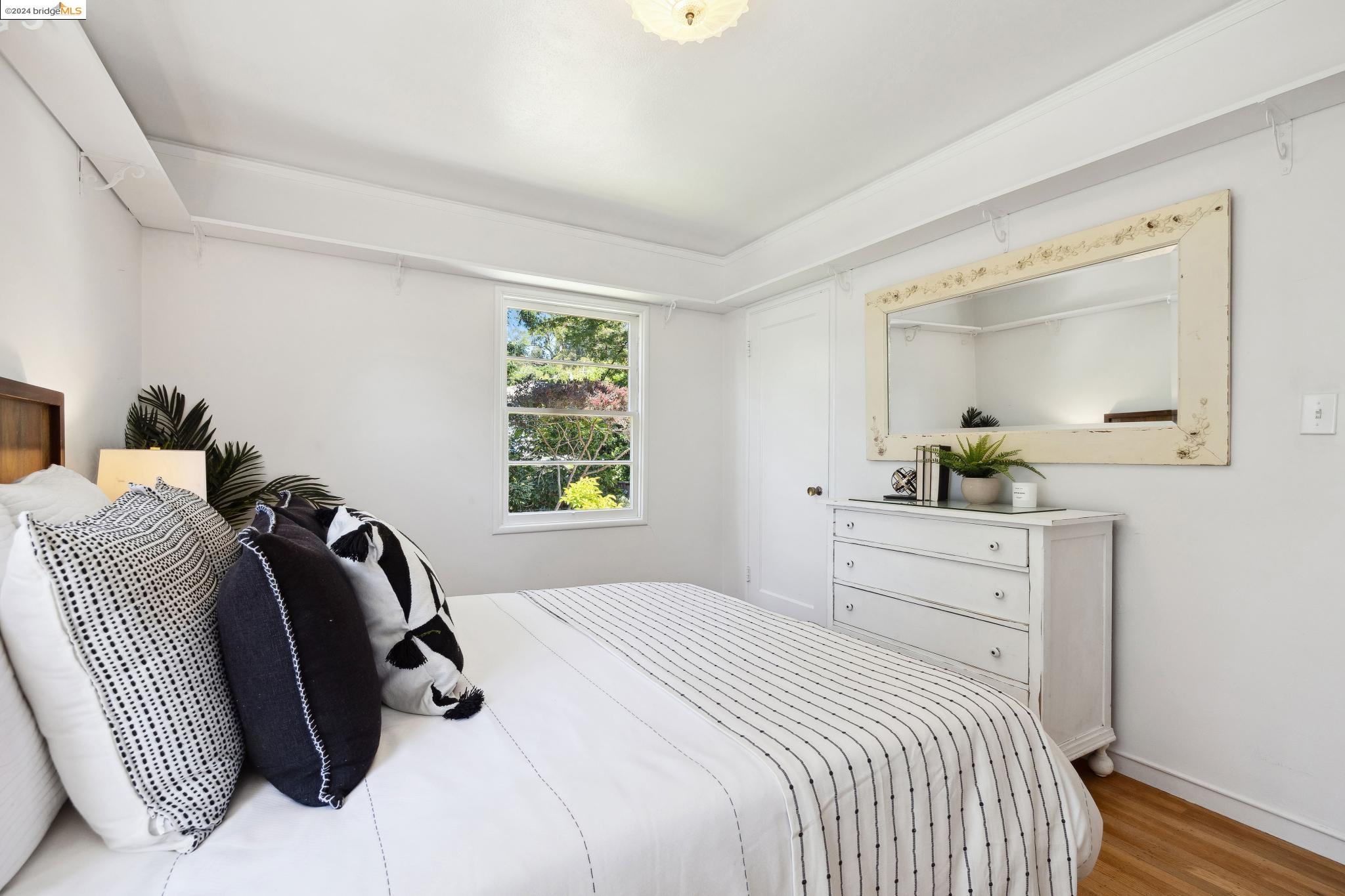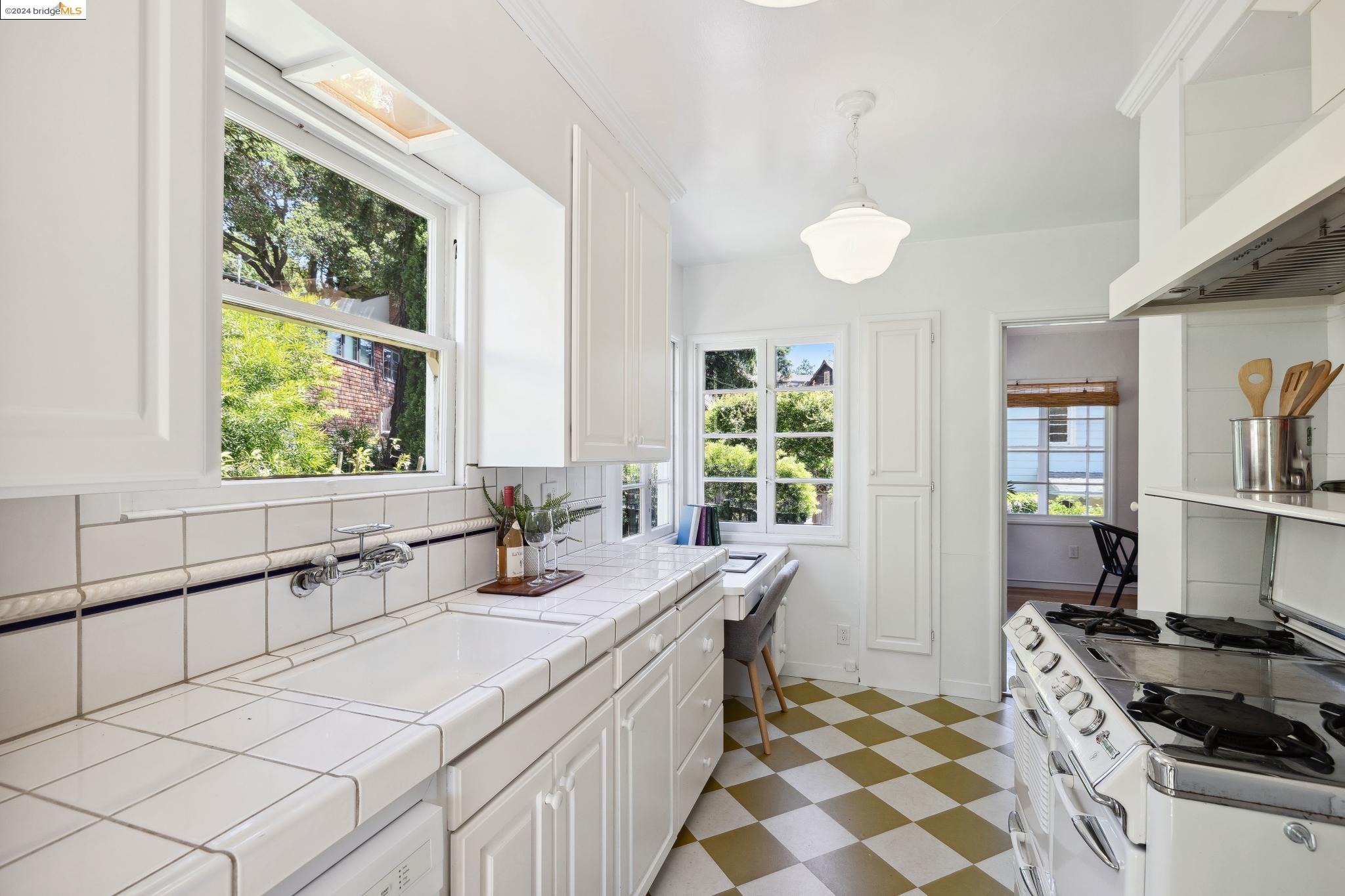 Welcome to 22 Avon Road, an enchanting retreat nestled in the heart of the delightful Kensington Hills. This charming home features 2 bedrooms and 1 bathroom, with stunning Bay views from the living room. The many large windows take full advantage of those beautiful views. The expansive living and dining room combination, complete with a cozy fireplace, built-in bookcase and beamed ceilings creates an inviting ambiance ideal for both relaxation and entertaining. Down the hall, you'll be captivated by the beautifully upgraded kitchen with antique stove, light fixtures and lovely checkerboard marmoleum floors. A built-in desk offers a perfect office area. Modern amenities seamlessly combine with classic charm. The main bedroom boasts more of the breathtaking Bay and bridge views, while the second bedroom provides a cozy refuge with a walk-in closet and wood clad ceiling. Important to note that the property includes community board approved plans for a lower-level ADU, presenting an excellent opportunity for customization and expansion, and there is a separate entrance to the space if desired. Step outside to a private oasis adorned with mature trees and vibrant professionally designed landscaping, perfect for enjoying the outdoors in tranquility.