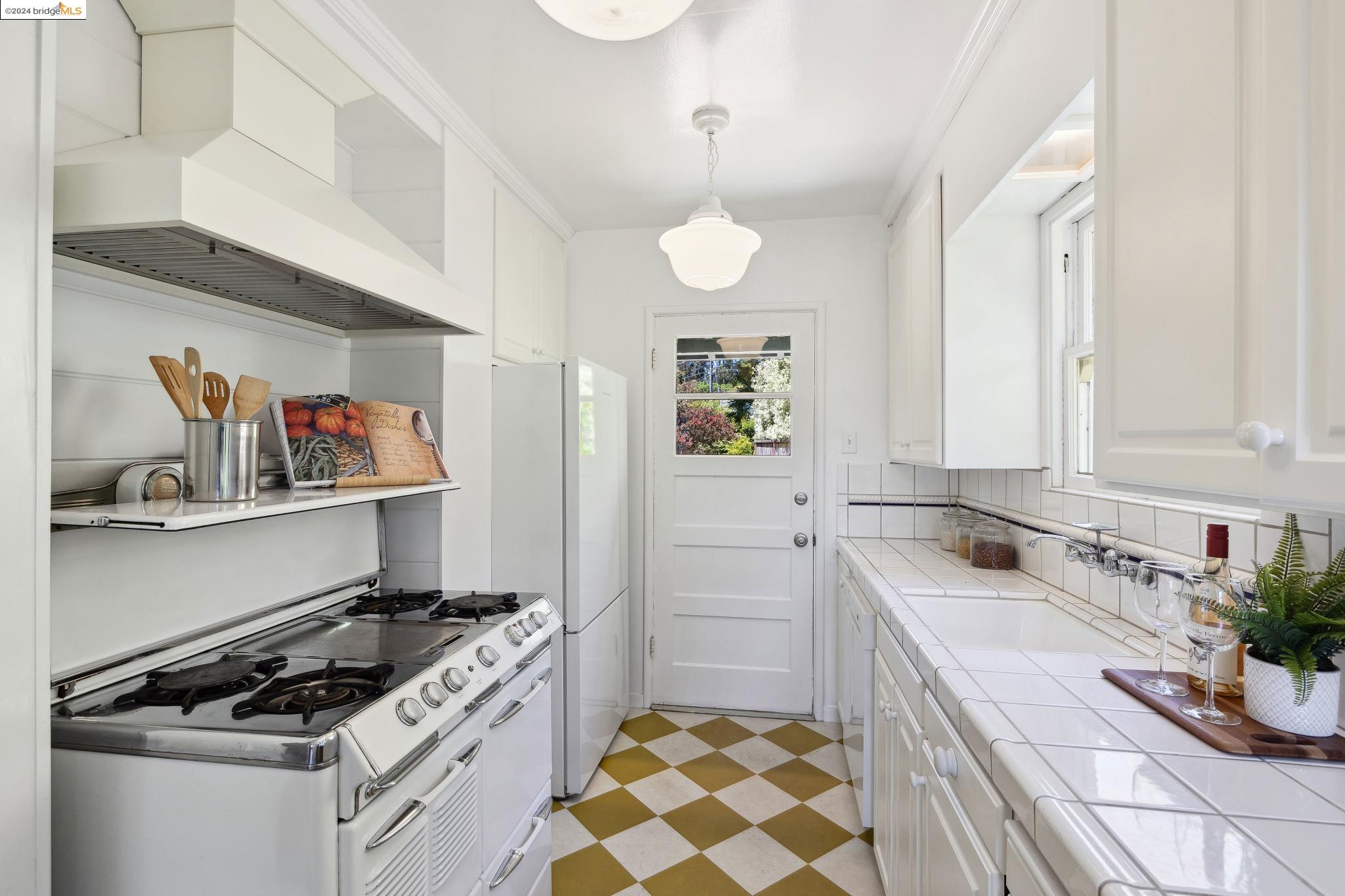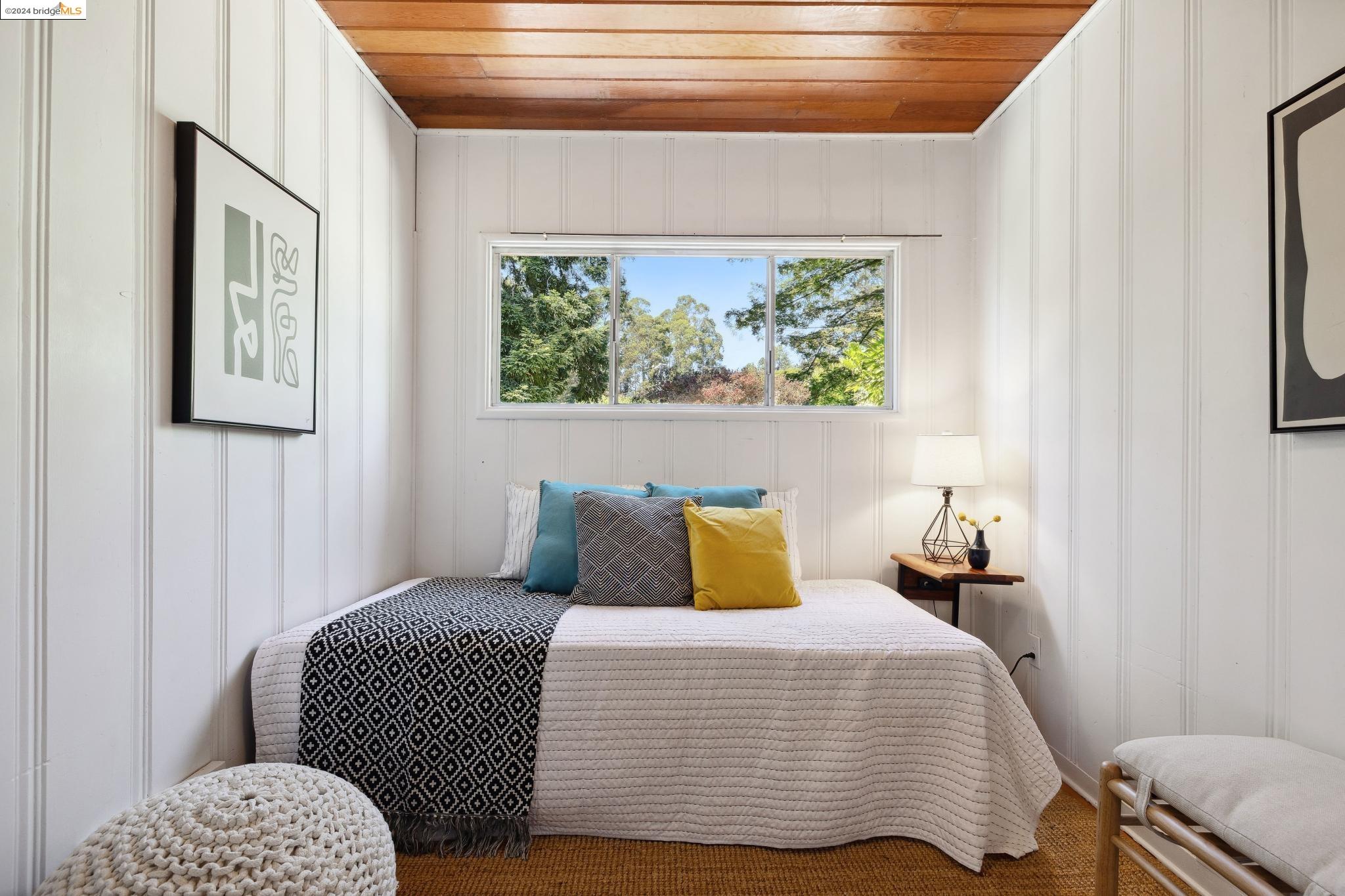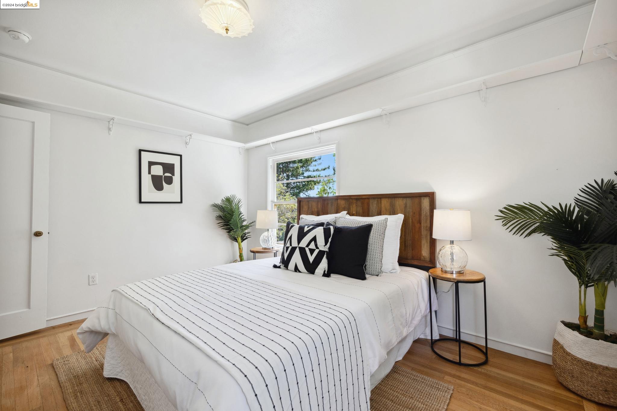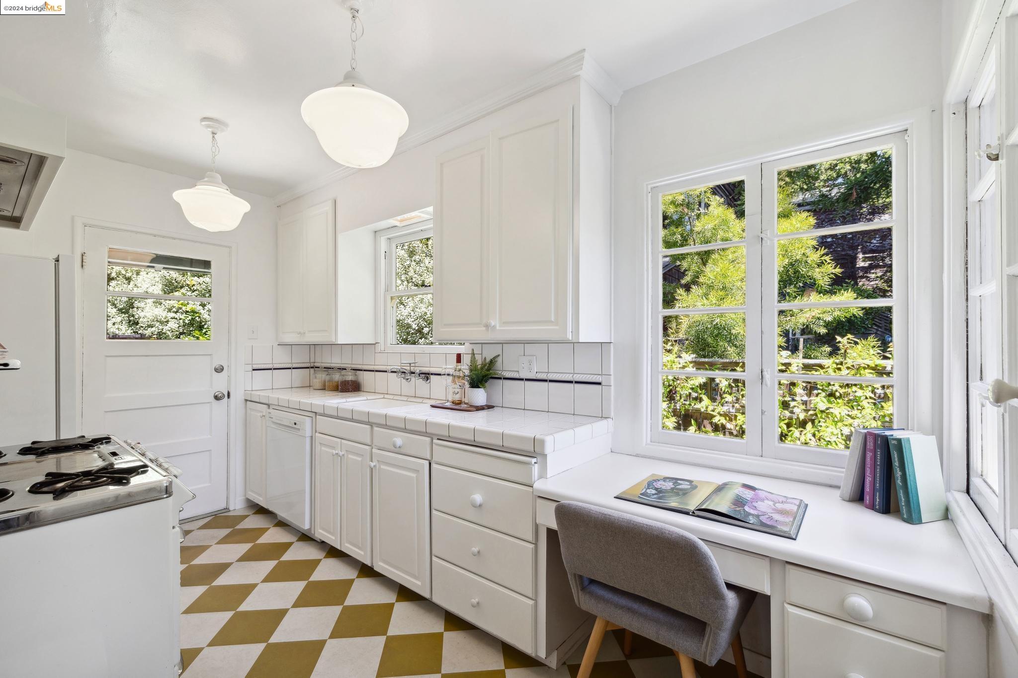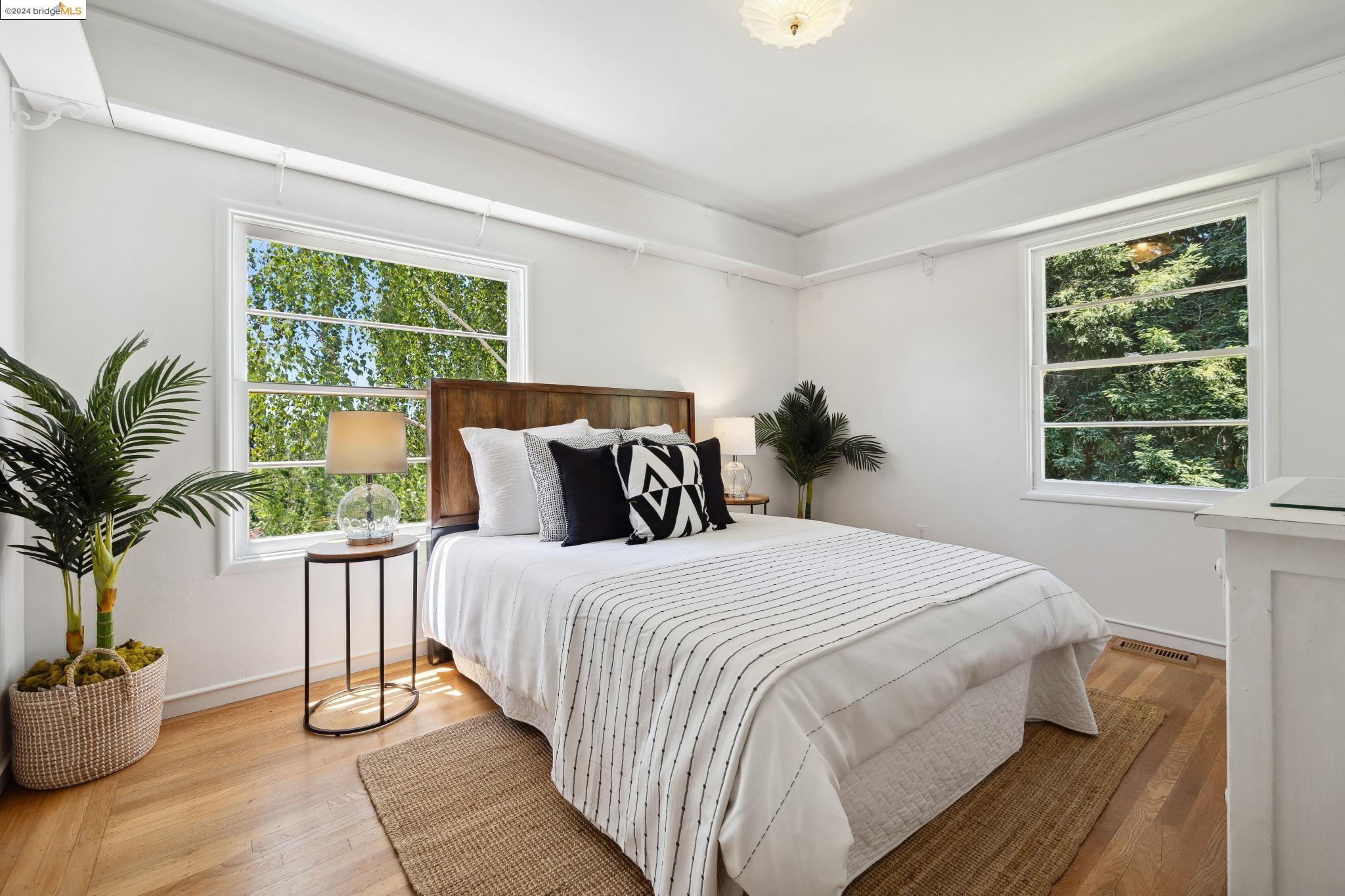Welcome to 22 Avon Road, an enchanting retreat nestled in the heart of the delightful Kensington Hills. This charming home features 2 bedrooms and 1 bathroom, with stunning Bay views from the living room. The many large windows take full advantage of those beautiful views. The expansive living and dining room combination, complete with a cozy fireplace, built-in bookcase and beamed ceilings creates an inviting ambiance ideal for both relaxation and entertaining. Down the hall, you'll be captivated by the beautifully upgraded kitchen with antique stove, light fixtures and lovely checkerboard marmoleum floors. A built-in desk offers a perfect office area. Modern amenities seamlessly combine with classic charm. The main bedroom boasts more of the breathtaking Bay and bridge views, while the second bedroom provides a cozy refuge with a walk-in closet and wood clad ceiling. Important to note that the property includes community board approved plans for a lower-level ADU, presenting an excellent opportunity for customization and expansion, and there is a separate entrance to the space if desired. Step outside to a private oasis adorned with mature trees and vibrant professionally designed landscaping, perfect for enjoying the outdoors in tranquility.