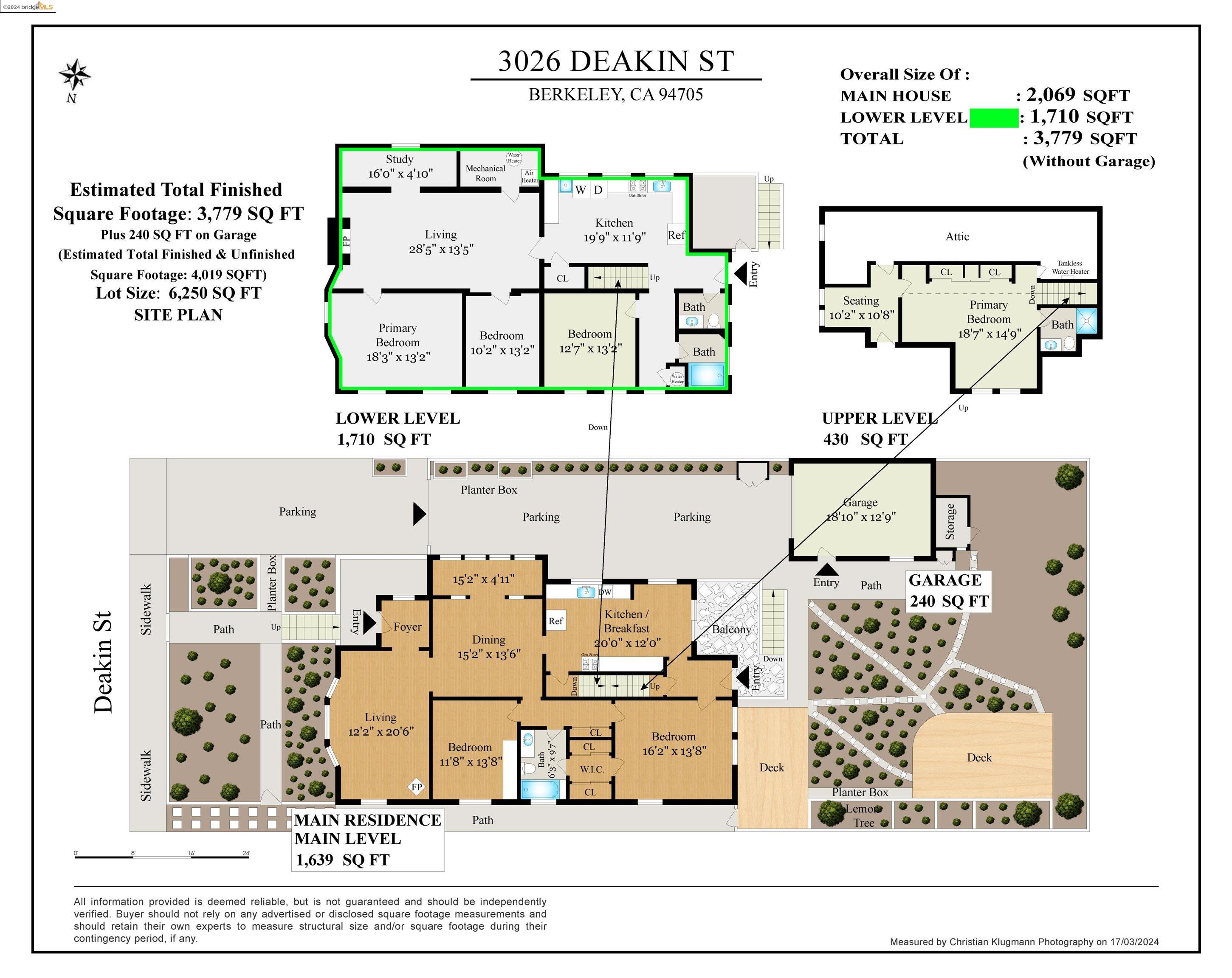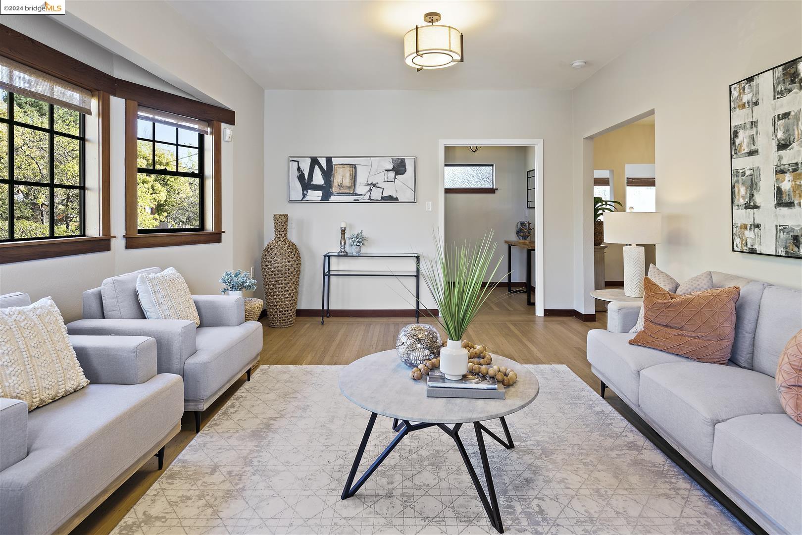 Nestled on a serene street in the esteemed Berkeley neighborhood, this elegant residence at 3026 Deakin Street offers an exceptional blend of space, style, and functionality. Boasting 6 bedrooms & 3 baths across 3686 sf, this home provides ample room for comfortable living & entertaining. The property's total lot size spans 6250 square feet, including a sprawling yard that invites outdoor relaxation and recreation. Upon entering, the newly painted interior and refinished floors exude a sense of sophistication. The updated kitchens & baths further enhance the home's allure, showcasing modern convenience and tasteful design. The main level features a seamless flow from living spaces to outdoor areas, where a detached garage provides convenient parking. Highlights include a non-conforming 1-bedroom unit and a studio apartment downstairs, offering flexibility and potential for rental income. For added convenience, dryer, washer, fireplace, and forced air system are among the home's amenities. Conveniently located near shops, Elmwood district, & the renowned Berkeley Bowl, this residence epitomizes the best of Berkeley. With its blend of classic charm and contemporary updates, this distinguished property presents a rare opportunity to experience the quintessential Berkeley lifestyle.