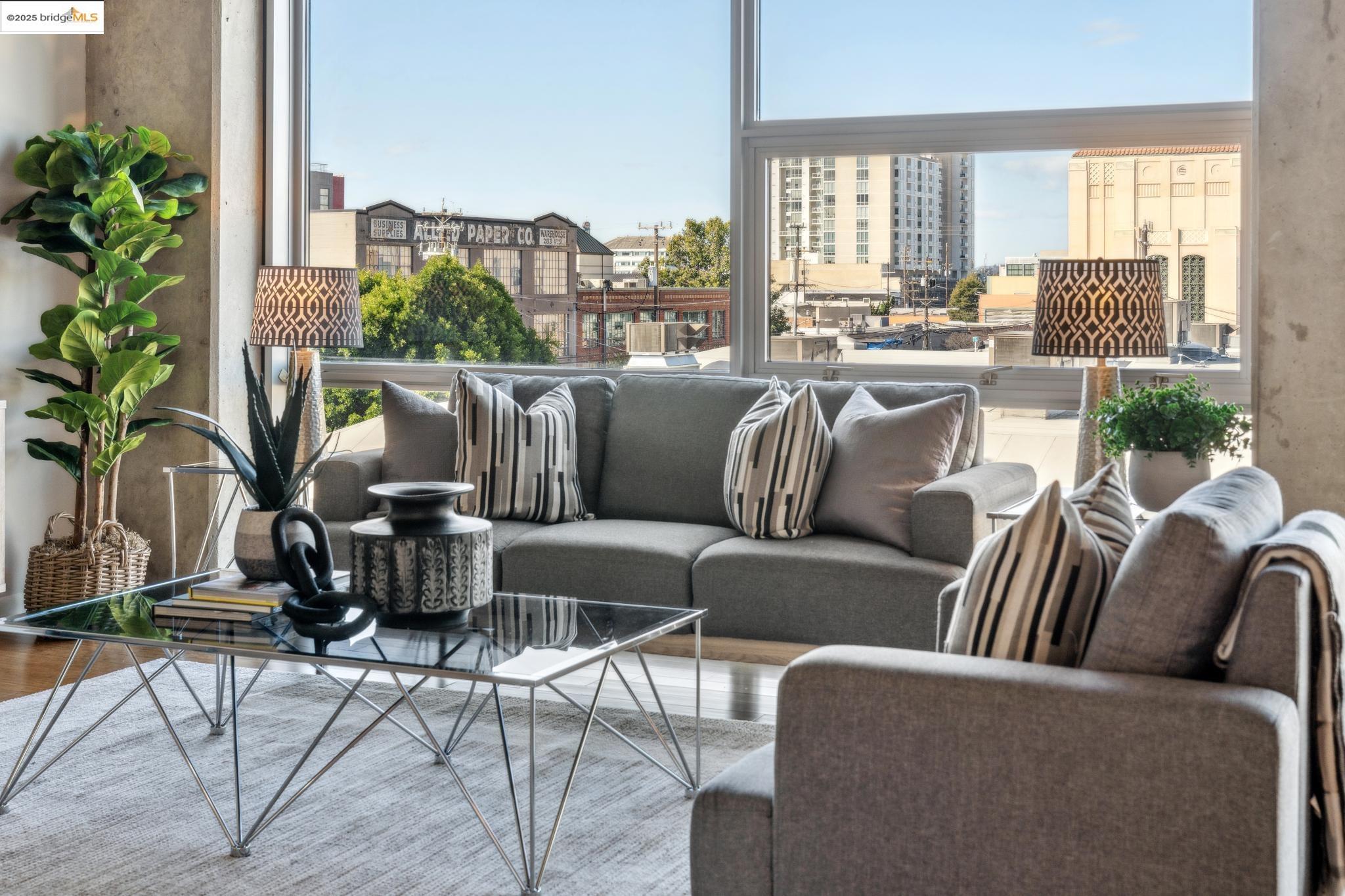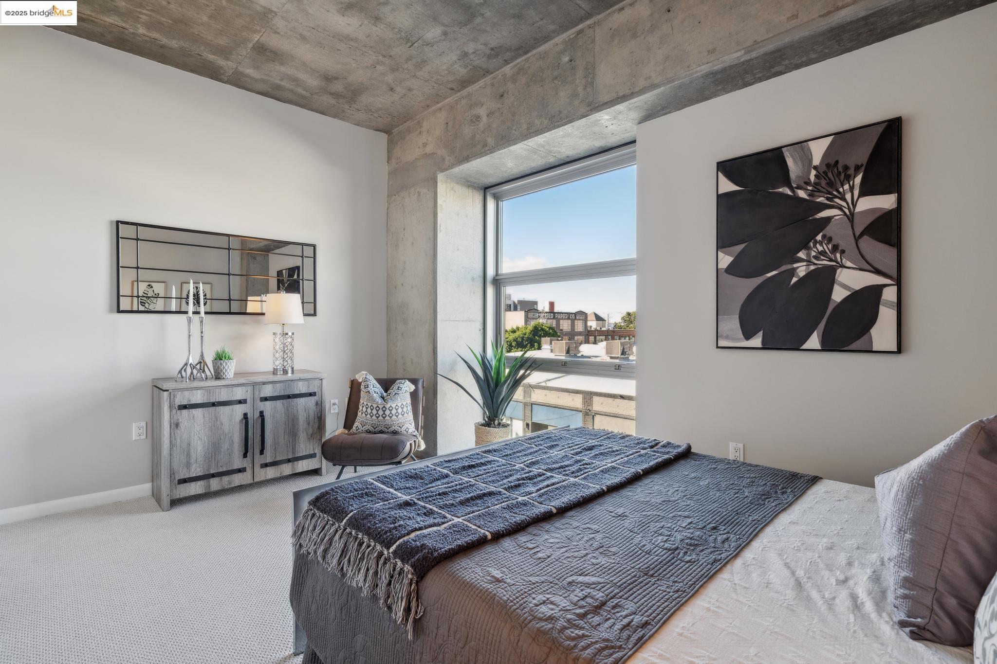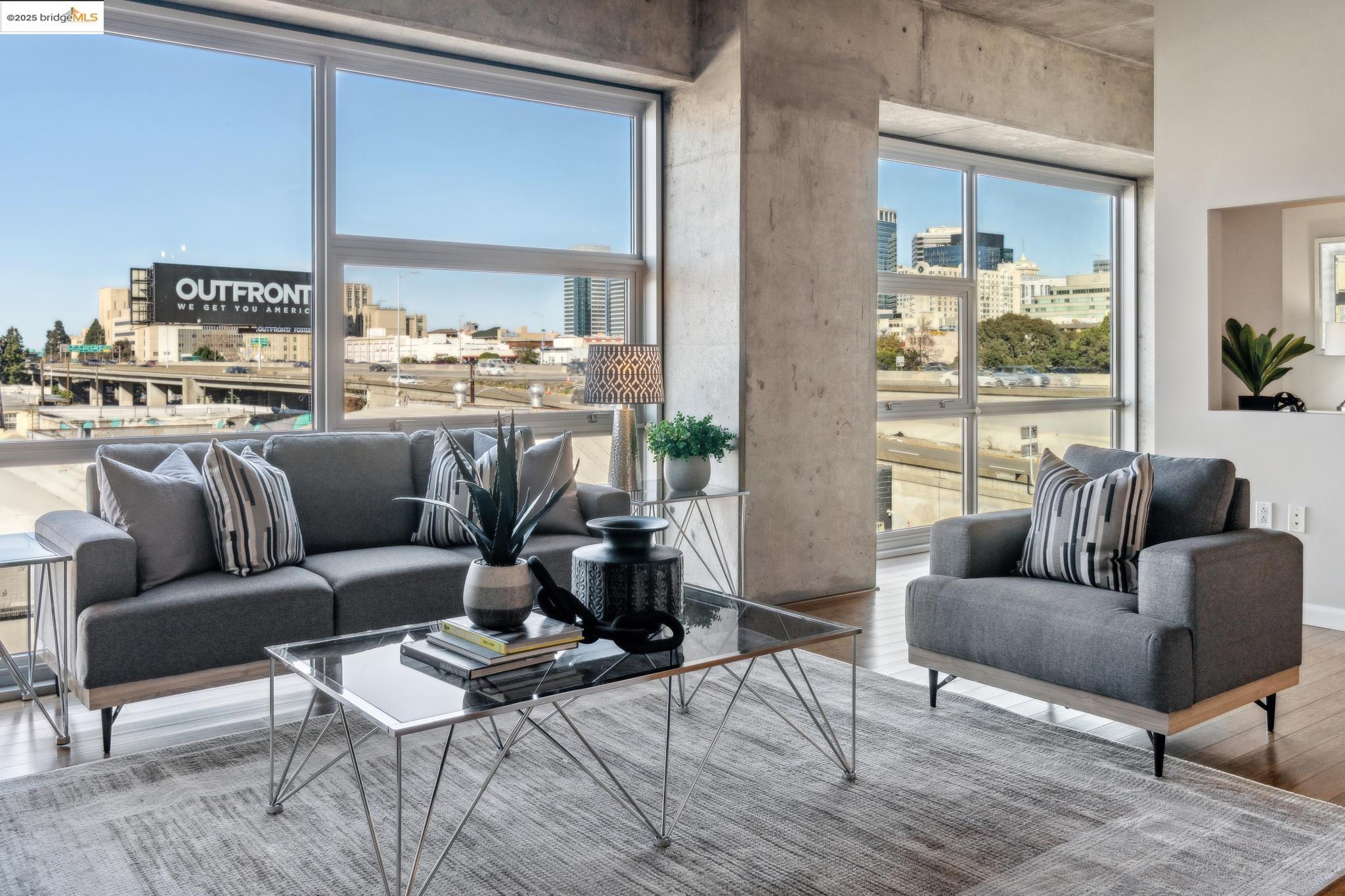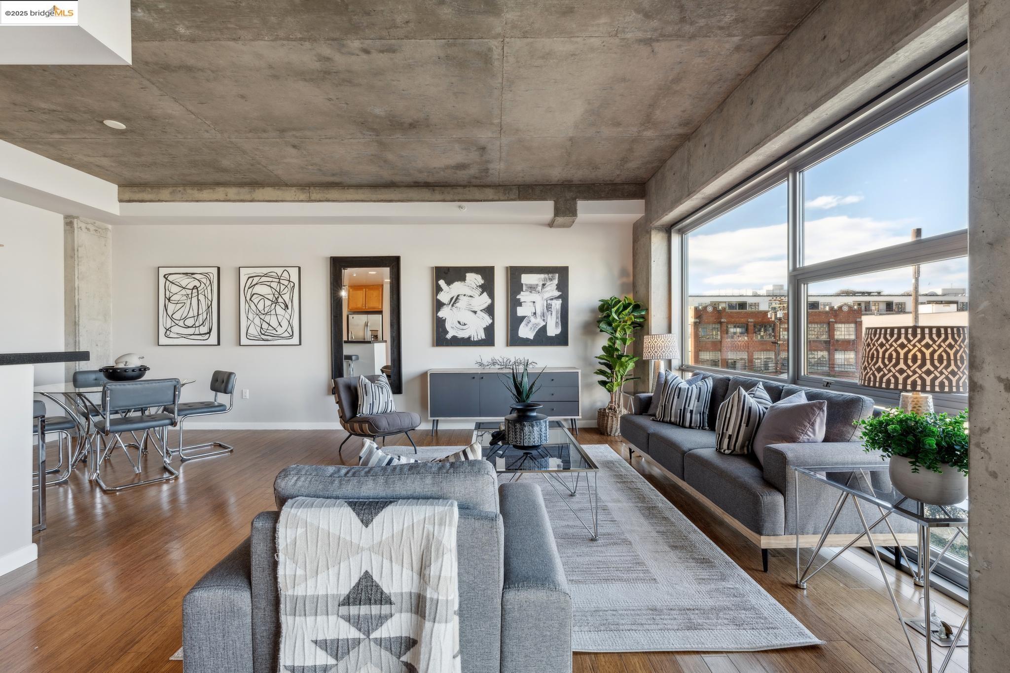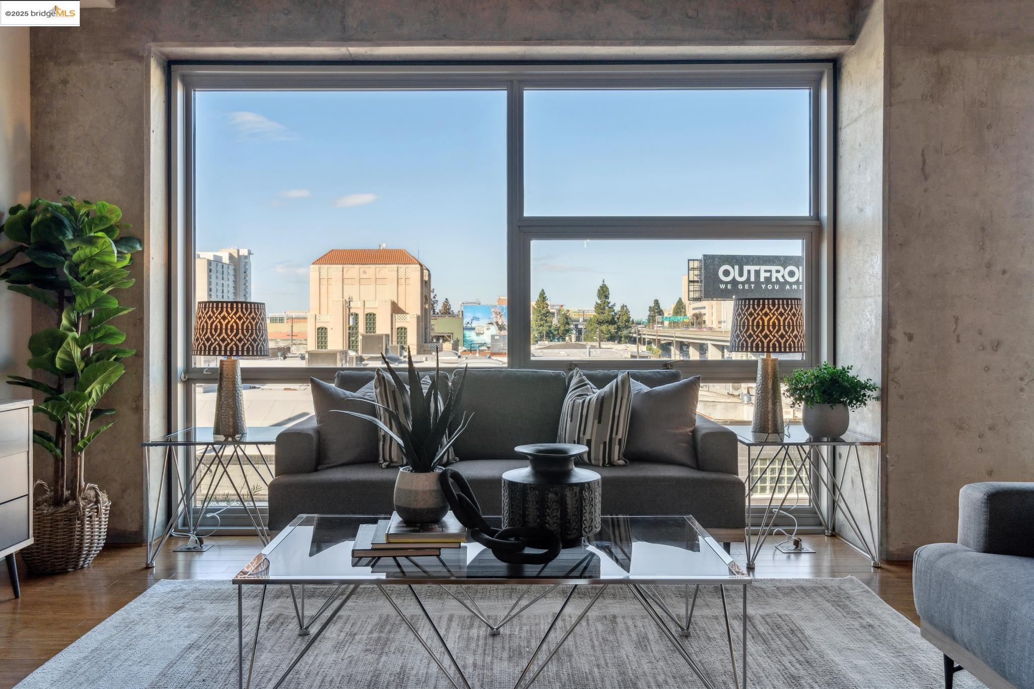 Welcome to urban living at its finest! Nestled in the heart of Oakland, this chic 2-bedroom, 2-bathroom condo at 428 Alice Street, Unit 422, offers a spacious 1,264 square feet of modern comfort. Revel in the industrial views with twinkling city lights from your expansive great room, where the kitchen, dining, and living areas blend seamlessly. A clever pony wall separates a large alcove, perfect for your home office needs. This pet-friendly building boasts a suite of amenities, including central AC, new in-unit washer/dryer and gas range, with deeded parking. Stay fit with the on-site gym, and enjoy the convenience of an elevator for easy access. Located near the vibrant Jack London Square, you'll have shops, restaurants, and entertainment at your fingertips. With easy freeway access and proximity to downtown Oakland, commuting is a breeze, whether by car or public transportation. Embrace the modern lifestyle in this stylish condo, where comfort meets convenience in the heart of the city. Don't miss out on this gem!