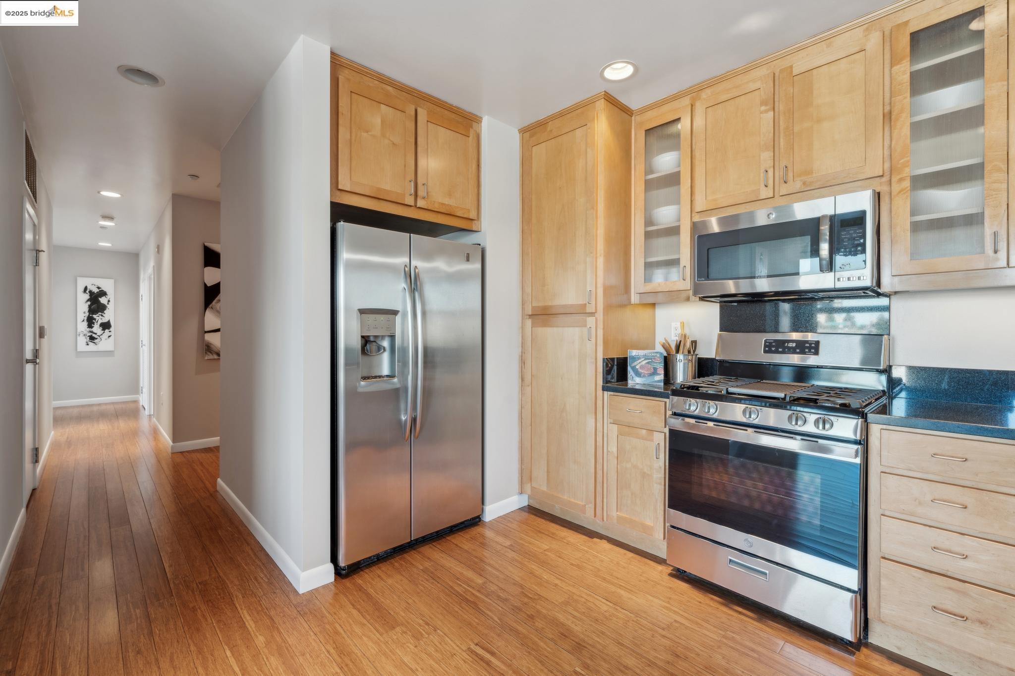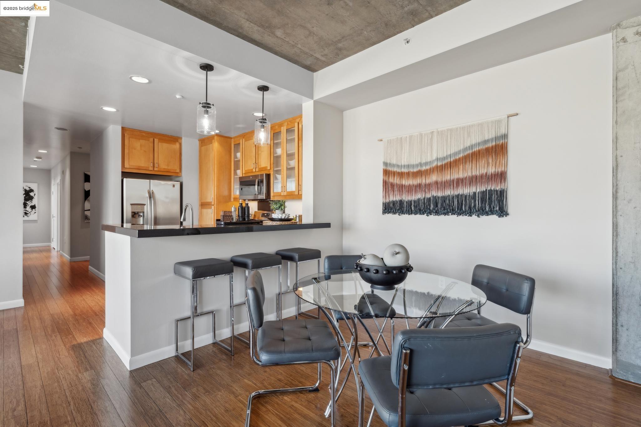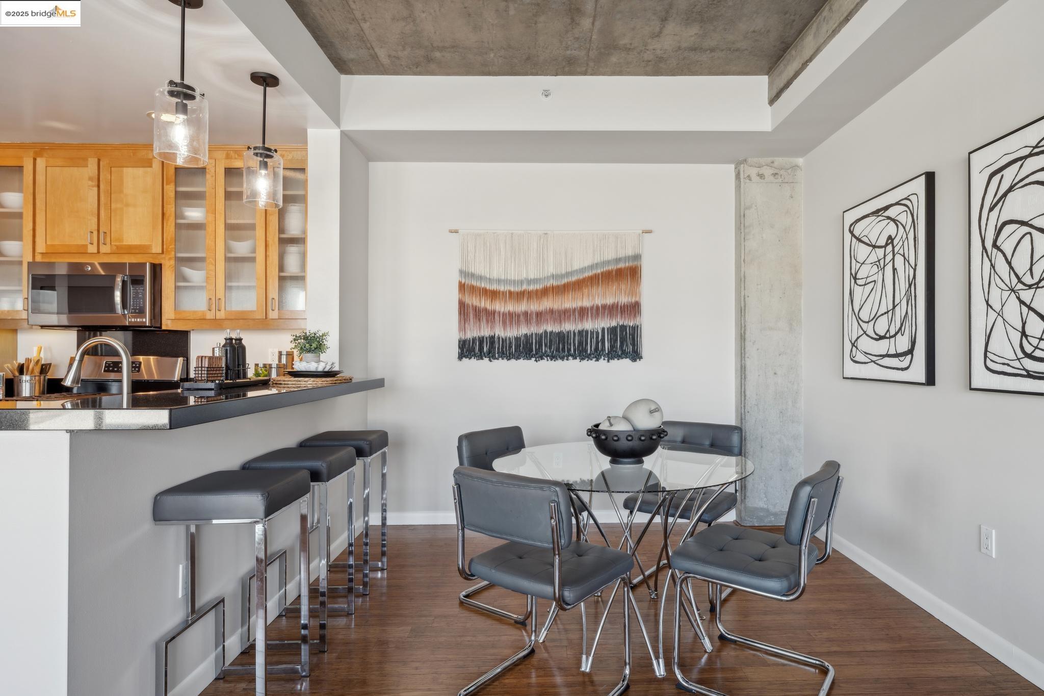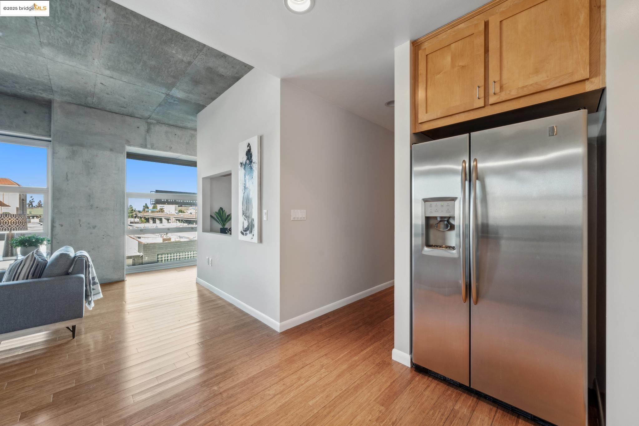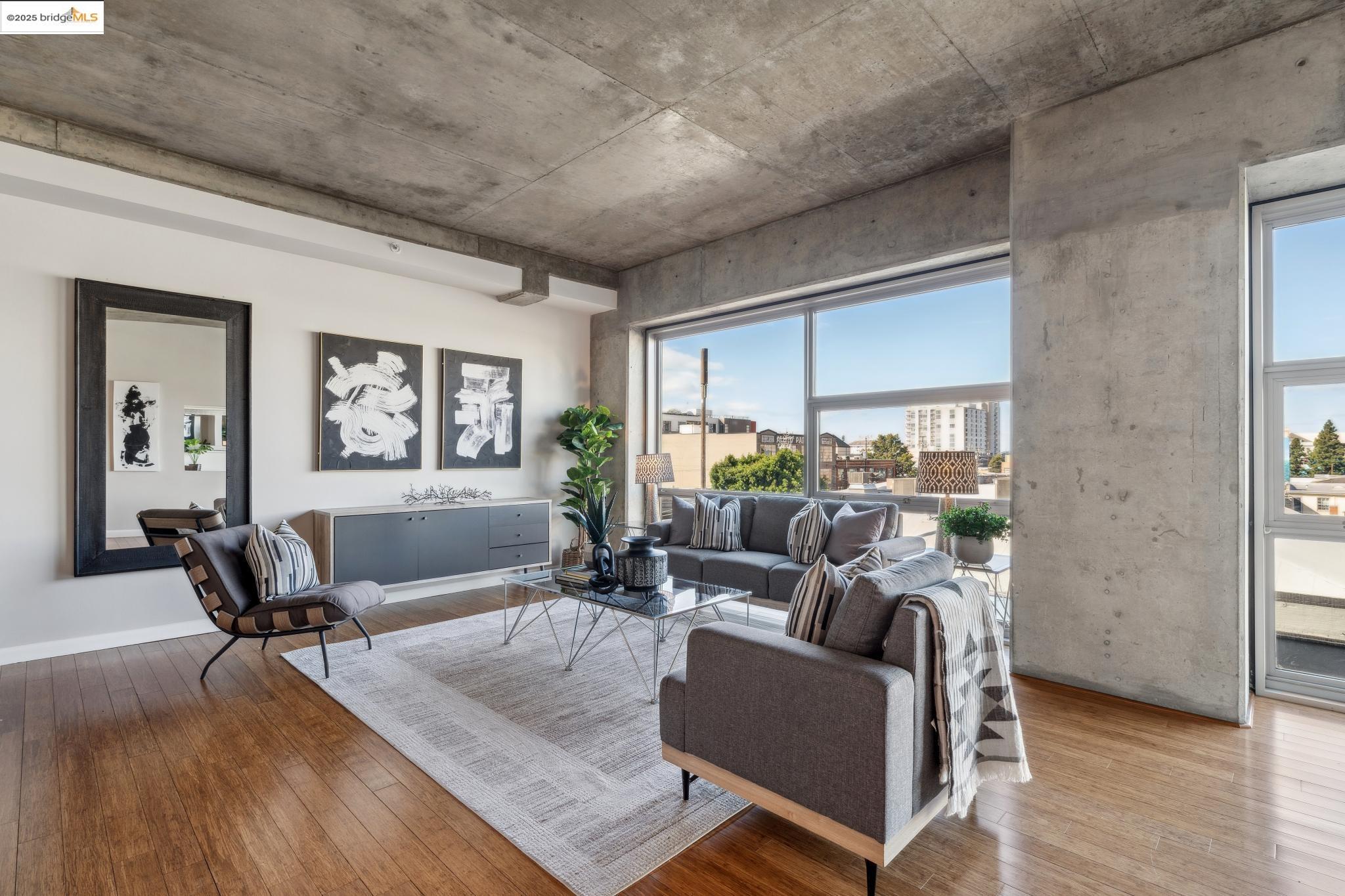 Welcome to urban living at its finest! Nestled in the heart of Oakland, this chic 2-bedroom, 2-bathroom condo at 428 Alice Street, Unit 422, offers a spacious 1,264 square feet of modern comfort. Revel in the industrial views with twinkling city lights from your expansive great room, where the kitchen, dining, and living areas blend seamlessly. A clever pony wall separates a large alcove, perfect for your home office needs. This pet-friendly building boasts a suite of amenities, including central AC, new in-unit washer/dryer and gas range, with deeded parking. Stay fit with the on-site gym, and enjoy the convenience of an elevator for easy access. Located near the vibrant Jack London Square, you'll have shops, restaurants, and entertainment at your fingertips. With easy freeway access and proximity to downtown Oakland, commuting is a breeze, whether by car or public transportation. Embrace the modern lifestyle in this stylish condo, where comfort meets convenience in the heart of the city. Don't miss out on this gem!