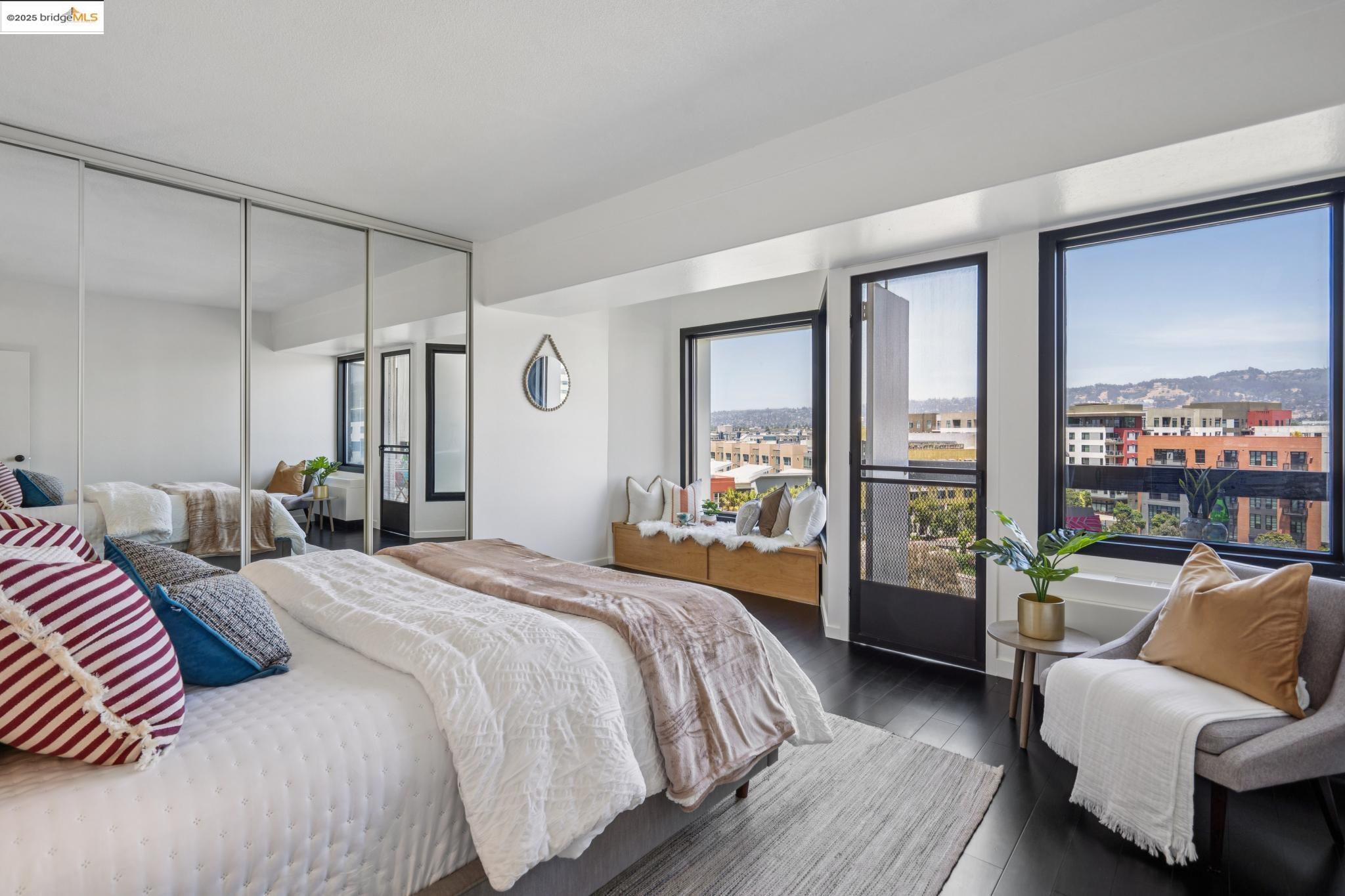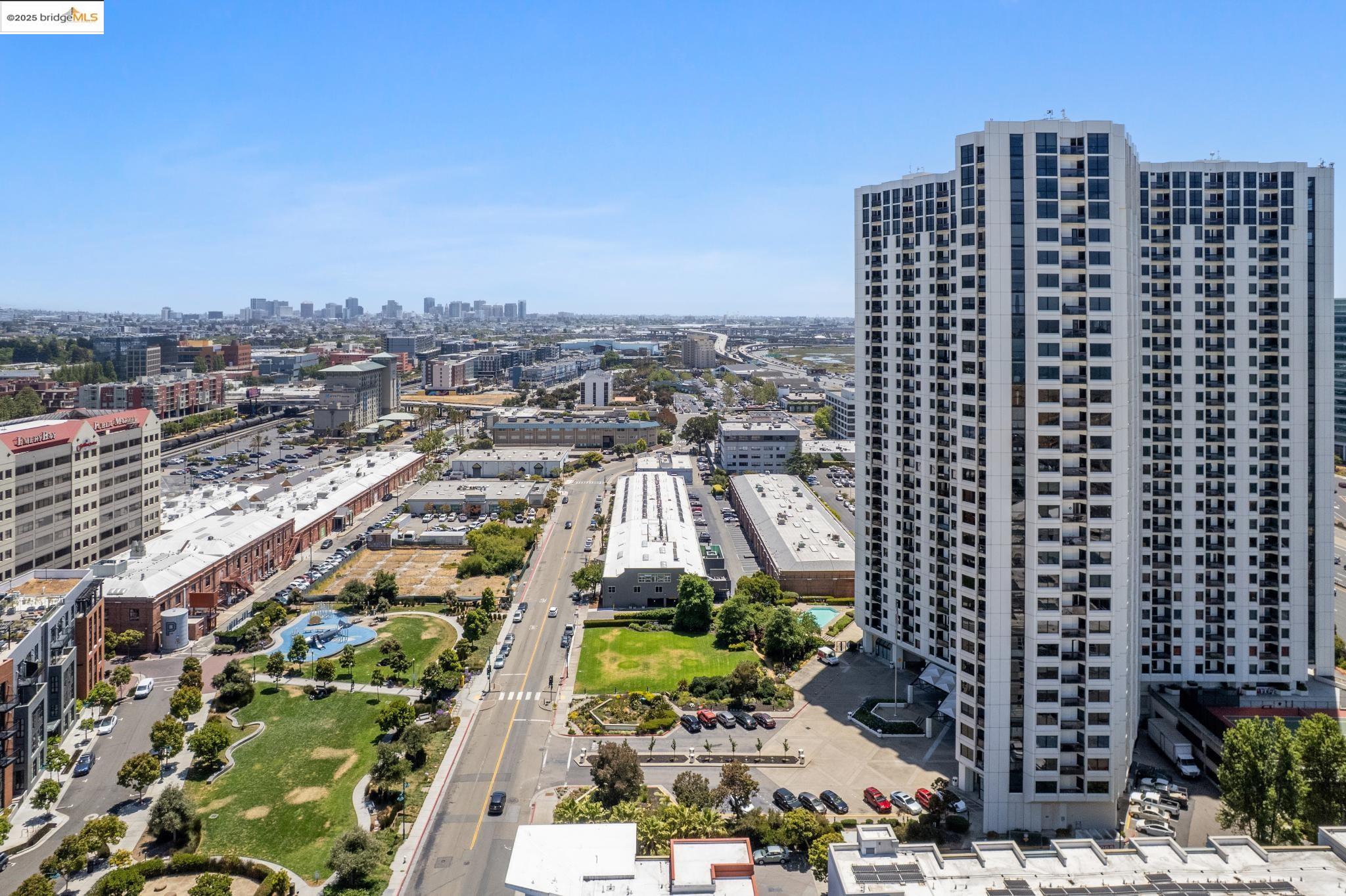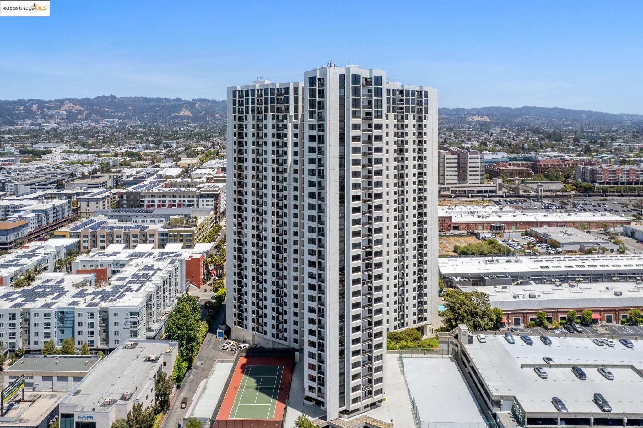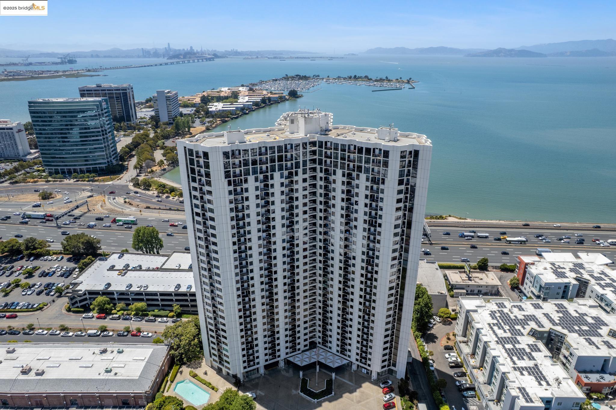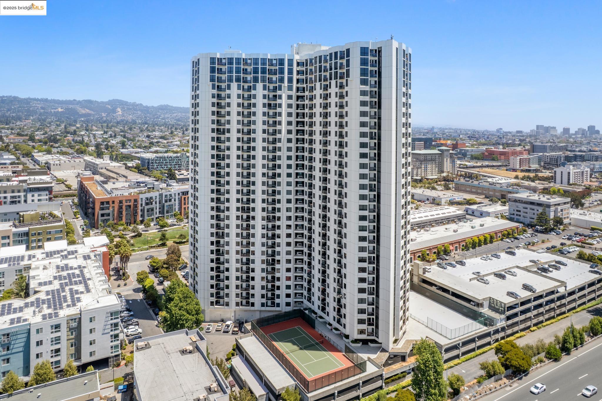 Welcome to urban living at its finest in Unit 727, nestled within the sought-after Pacific Park Plaza at 6363 Christie Avenue in Emeryville. This modern, personable space offers 2 bedrooms and 1.5 bathrooms, perfect for a dynamic lifestyle. Step into a large open living room, dining room, and kitchen great room that invites entertaining and relaxation. There is a balcony off this living room area as well, The second bedroom doubles beautifully and is most useful as a home office or guest room, offering flexibility in design and function. Retreat to the expansive primary suite complete with a private balcony, where you can savor terrific urban views. Enjoy the luxury of one and a half baths, enhancing everyday convenience. Residents enjoy premium amenities, including a tennis court, pool, a gym, and meticulously maintained grounds. With designated guest and resident parking, plus the added reassurance of a doorman and 24/7 security, peace of mind is a given. This home serves as a gateway to a vibrant community, providing easy access to local dining, shopping, and public transportation. Your modern lifestyle awaits at Pacific Park Plaza.