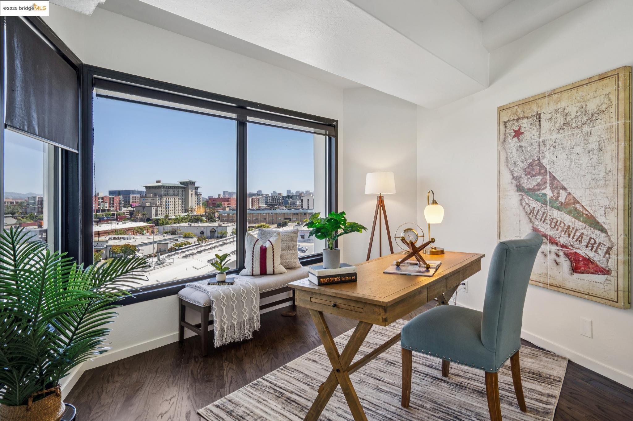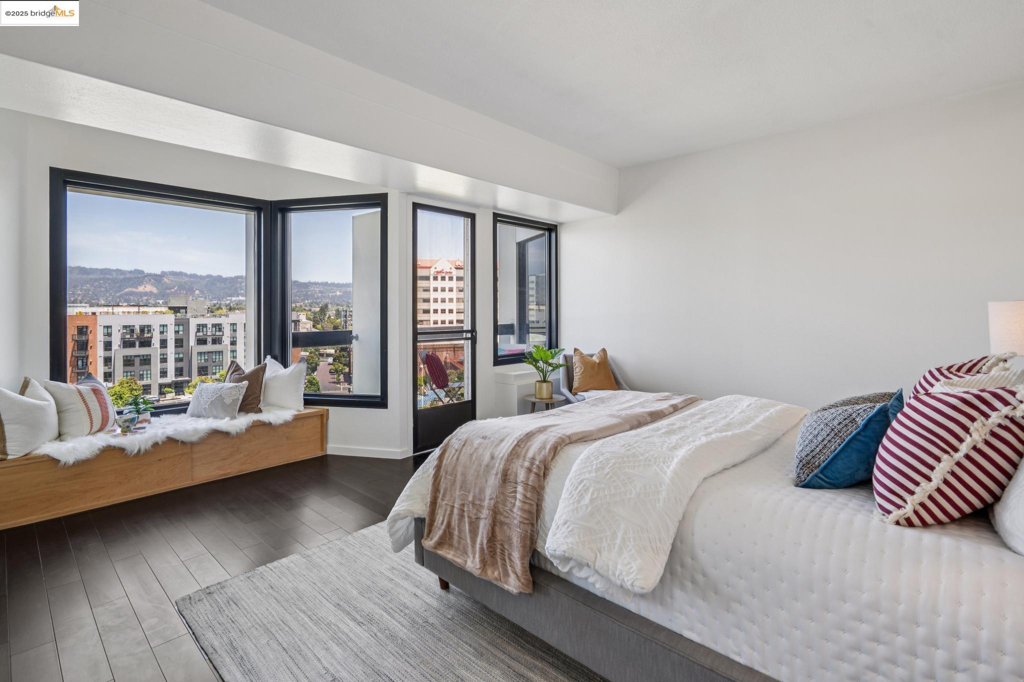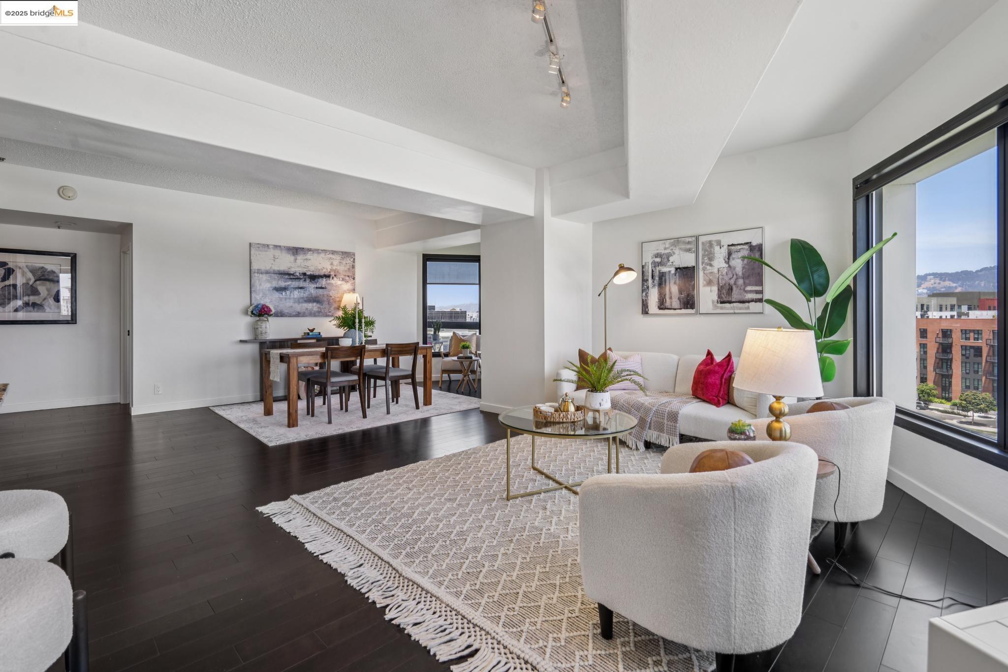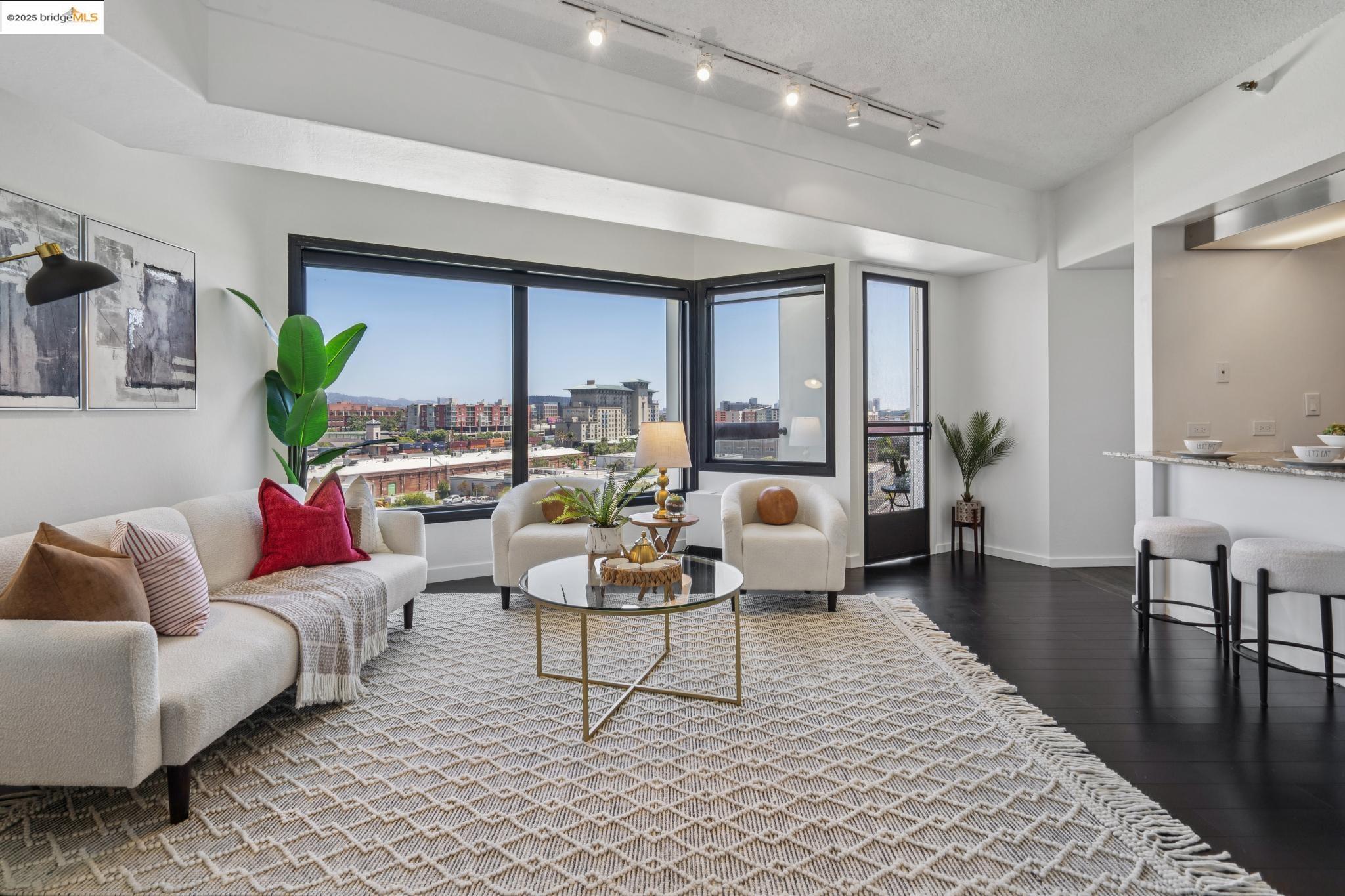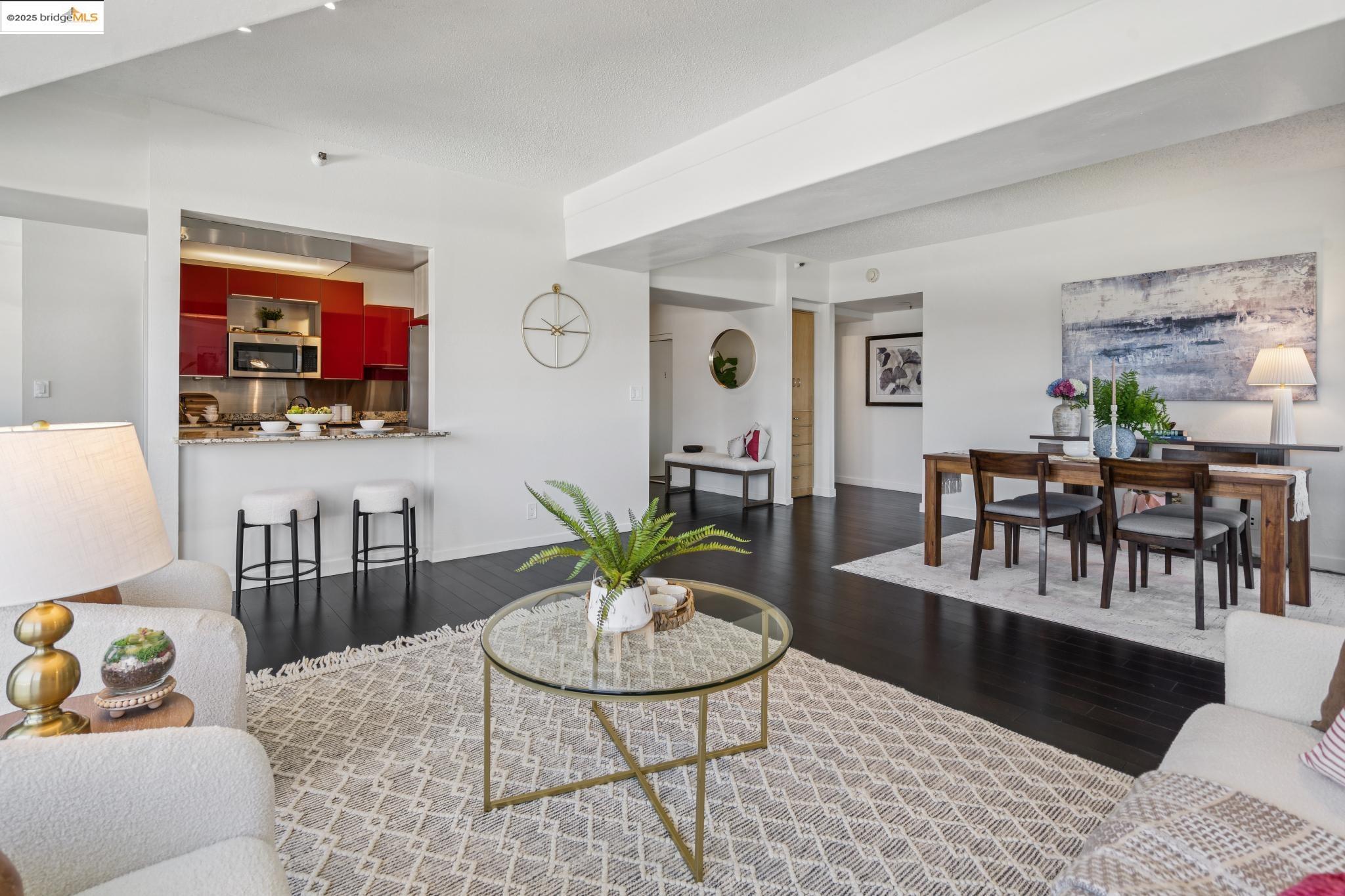 Welcome to urban living at its finest in Unit 727, nestled within the sought-after Pacific Park Plaza at 6363 Christie Avenue in Emeryville. This modern, personable space offers 2 bedrooms and 1.5 bathrooms, perfect for a dynamic lifestyle. Step into a large open living room, dining room, and kitchen great room that invites entertaining and relaxation. There is a balcony off this living room area as well, The second bedroom doubles beautifully and is most useful as a home office or guest room, offering flexibility in design and function. Retreat to the expansive primary suite complete with a private balcony, where you can savor terrific urban views. Enjoy the luxury of one and a half baths, enhancing everyday convenience. Residents enjoy premium amenities, including a tennis court, pool, a gym, and meticulously maintained grounds. With designated guest and resident parking, plus the added reassurance of a doorman and 24/7 security, peace of mind is a given. This home serves as a gateway to a vibrant community, providing easy access to local dining, shopping, and public transportation. Your modern lifestyle awaits at Pacific Park Plaza.