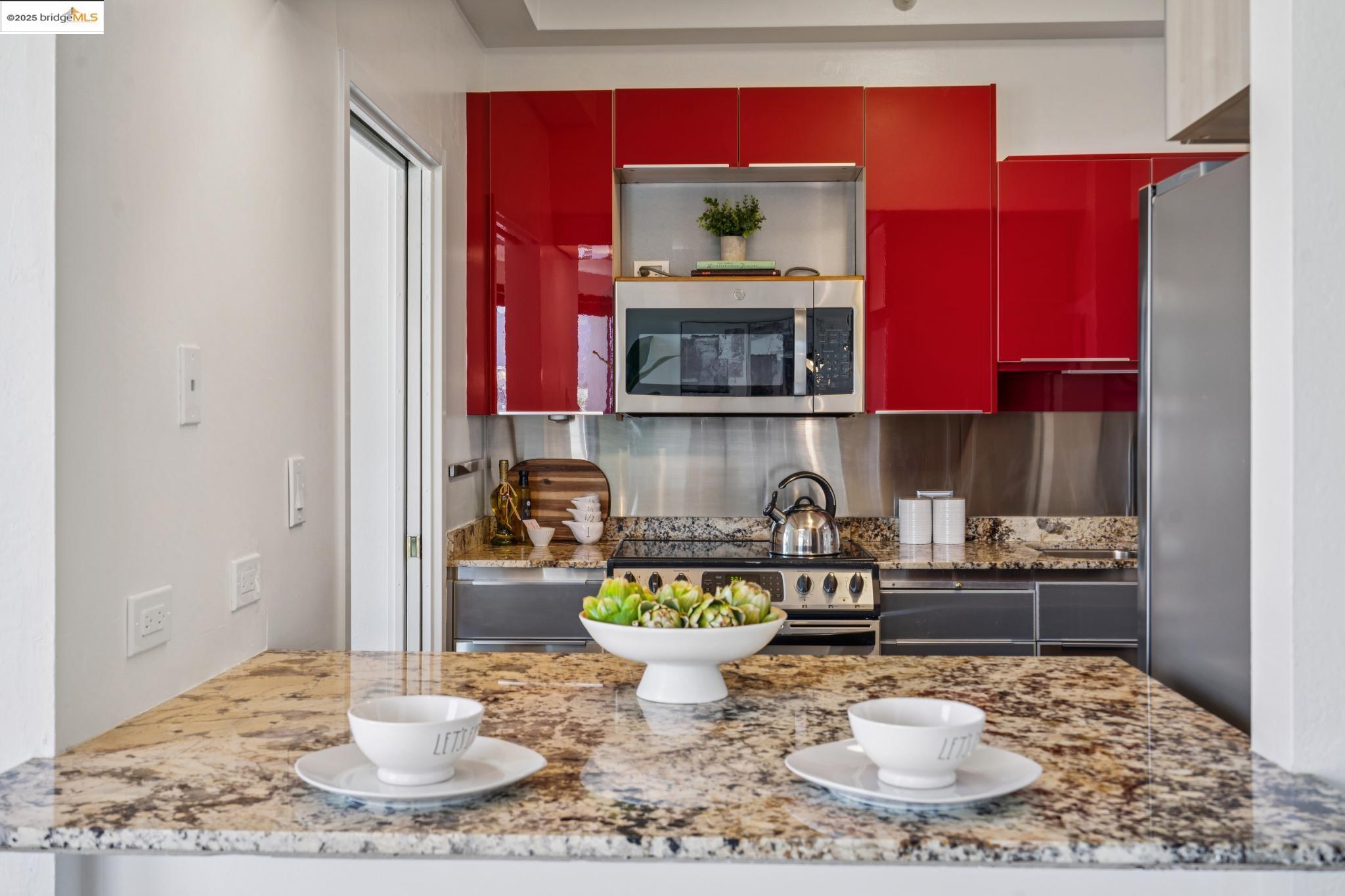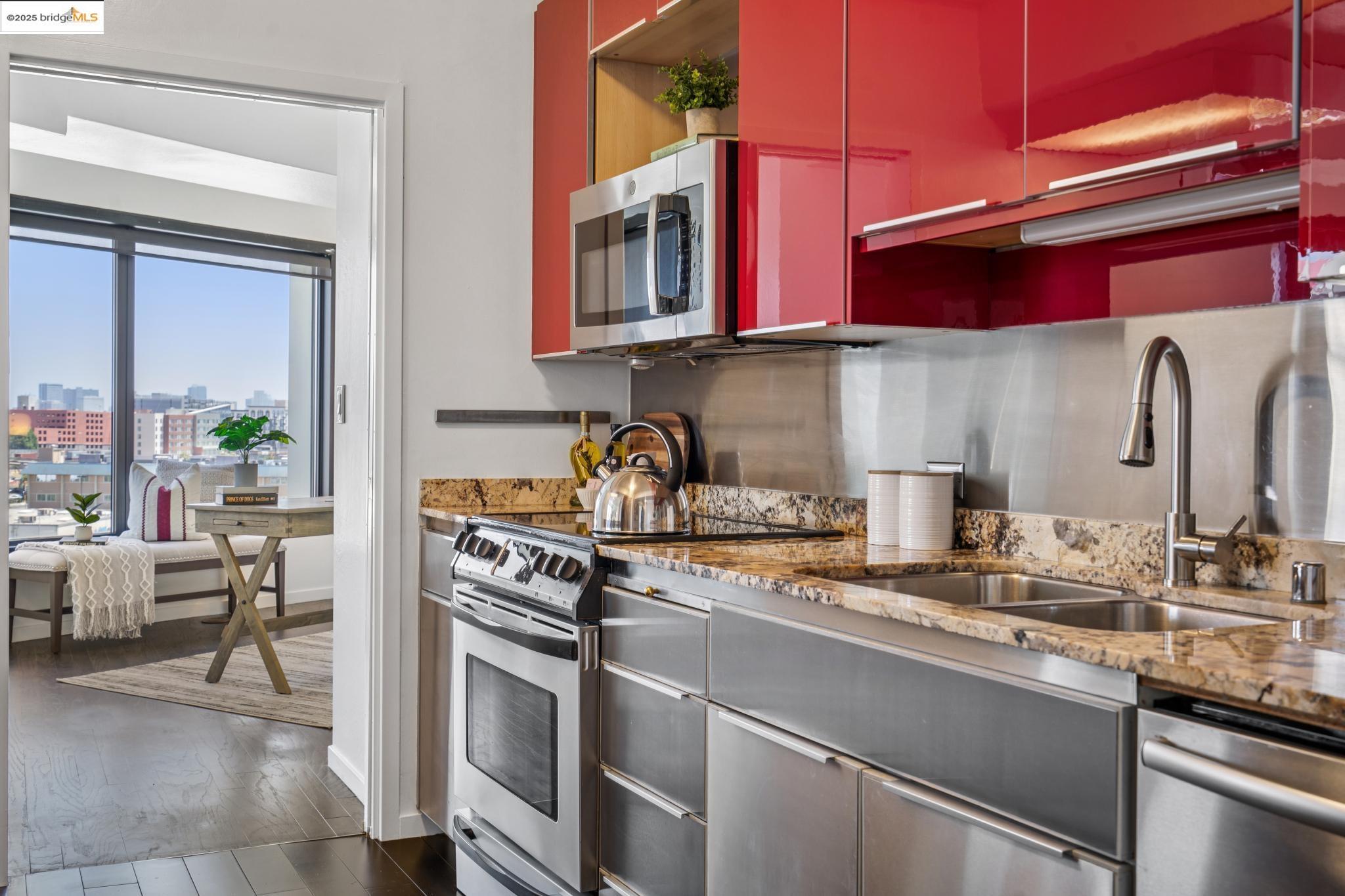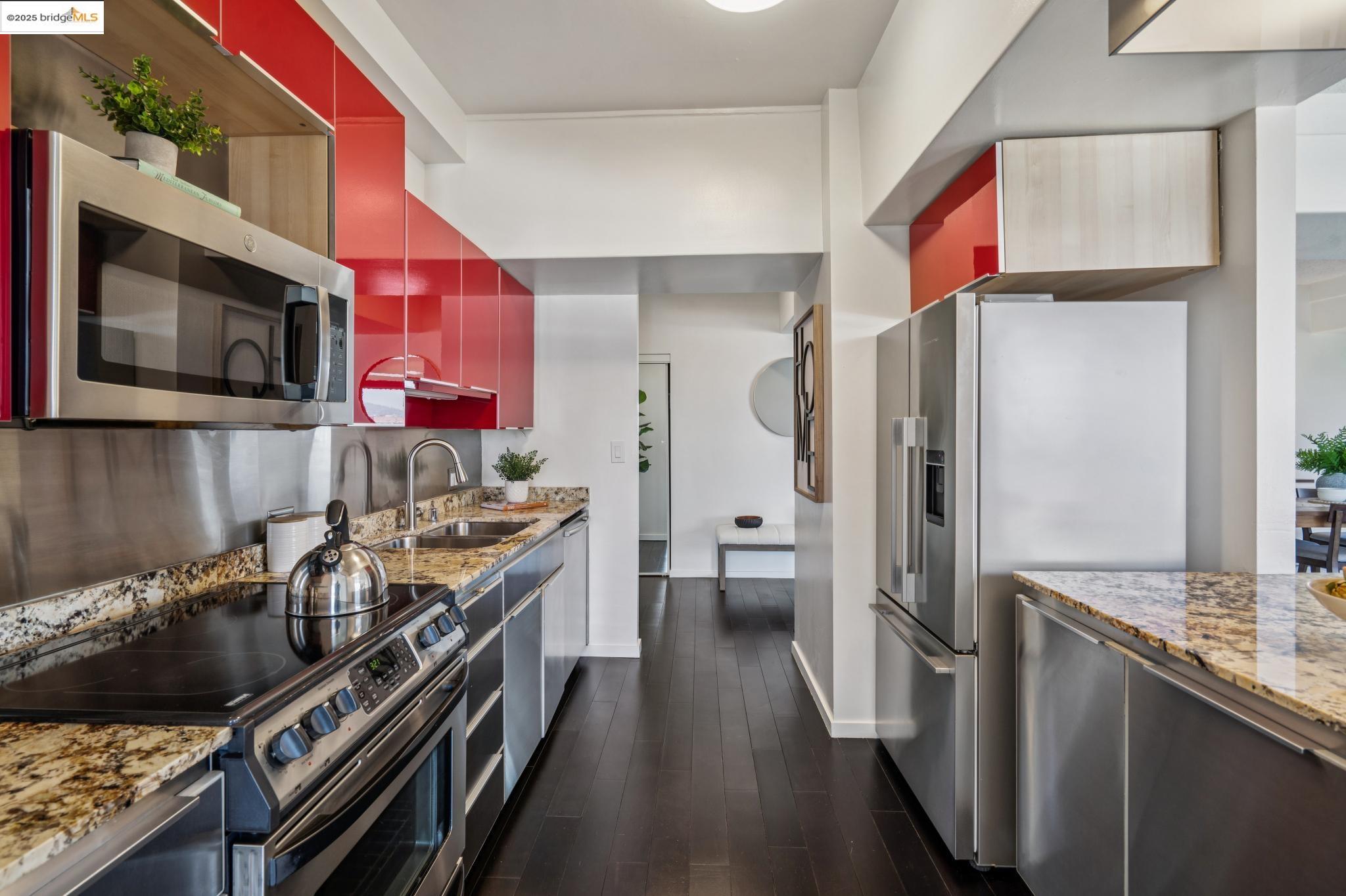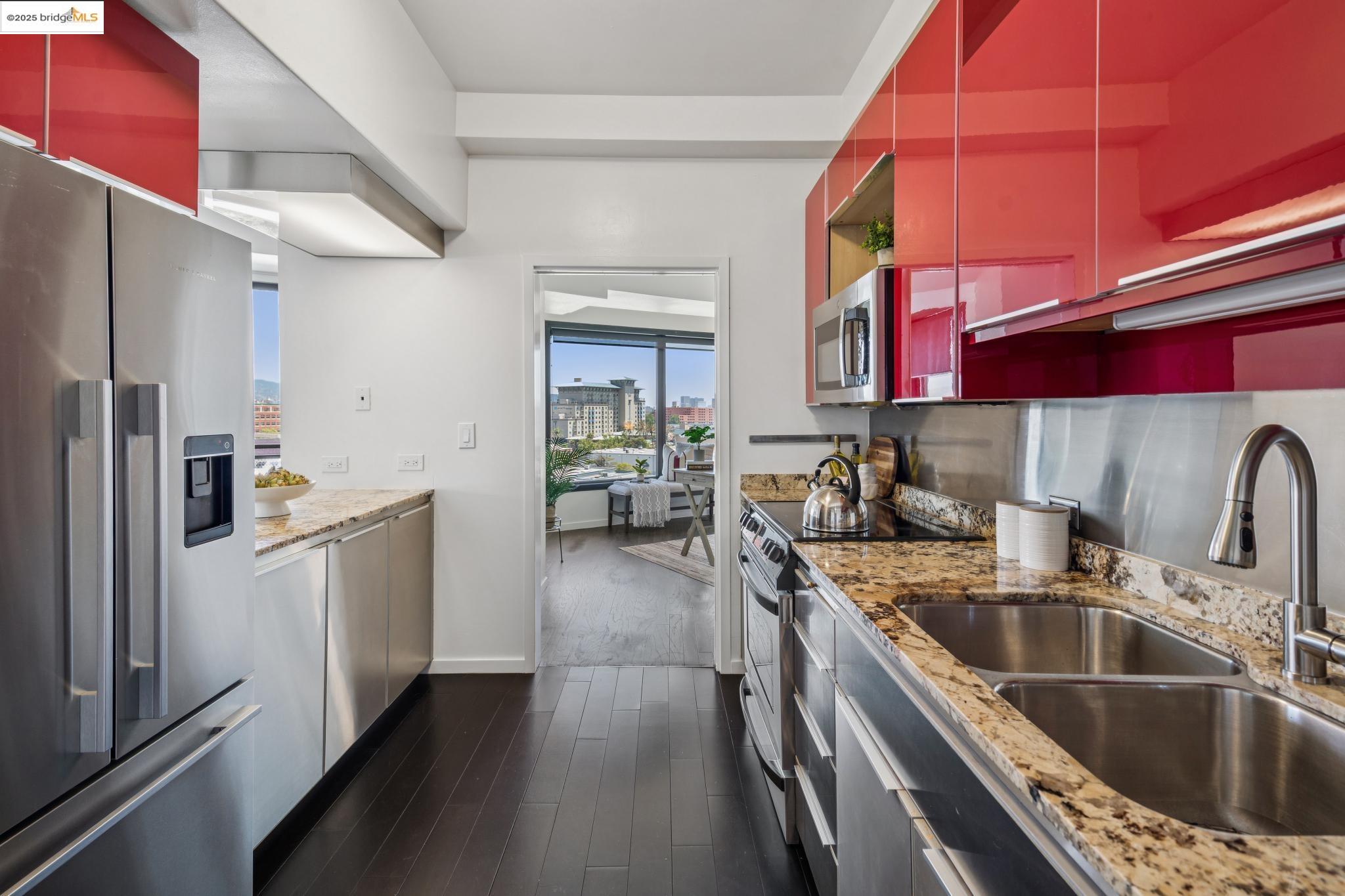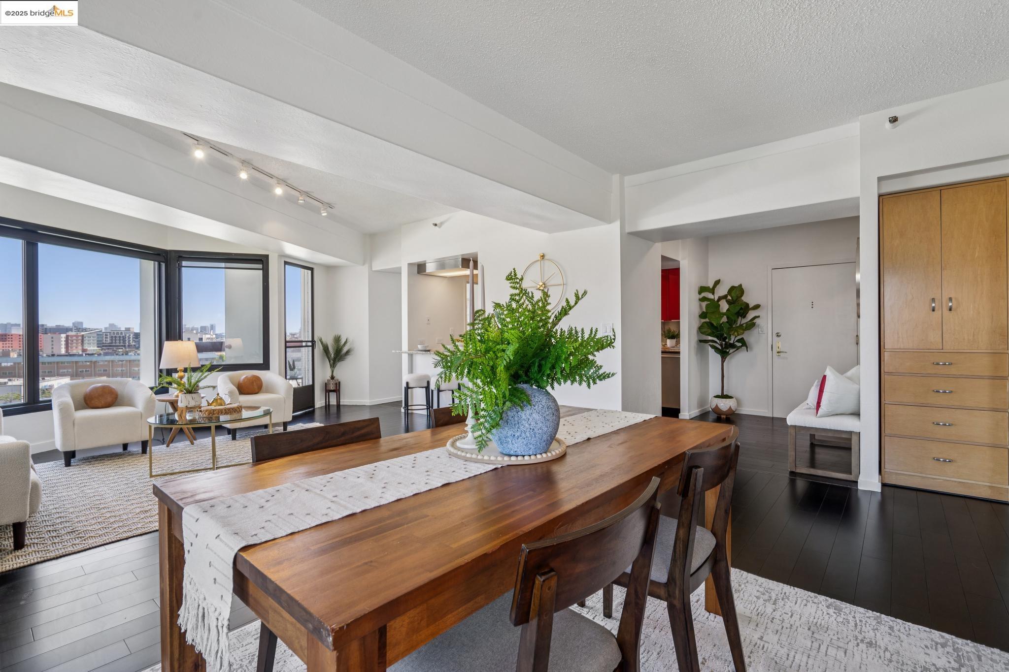 Welcome to urban living at its finest in Unit 727, nestled within the sought-after Pacific Park Plaza at 6363 Christie Avenue in Emeryville. This modern, personable space offers 2 bedrooms and 1.5 bathrooms, perfect for a dynamic lifestyle. Step into a large open living room, dining room, and kitchen great room that invites entertaining and relaxation. There is a balcony off this living room area as well, The second bedroom doubles beautifully and is most useful as a home office or guest room, offering flexibility in design and function. Retreat to the expansive primary suite complete with a private balcony, where you can savor terrific urban views. Enjoy the luxury of one and a half baths, enhancing everyday convenience. Residents enjoy premium amenities, including a tennis court, pool, a gym, and meticulously maintained grounds. With designated guest and resident parking, plus the added reassurance of a doorman and 24/7 security, peace of mind is a given. This home serves as a gateway to a vibrant community, providing easy access to local dining, shopping, and public transportation. Your modern lifestyle awaits at Pacific Park Plaza.
