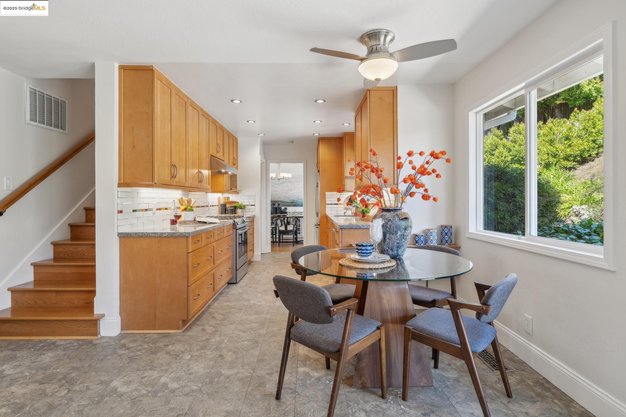 7610 Hansom Drive is a stunningly lovely mid-century home nestled in the coveted Sequoyah neighborhood. This home offers four spacious bedrooms, two and a half baths thoughtfully designed across 2126 square feet of refined living space. You step inside to the expansive sun-drenched living room which seamlessly flows into the dining room off the large well-appointed kitchen. The family room is off this kitchen and is an inviting space for daily living, enhanced by a cozy fireplace. Anchoring all of this area are vistas through the many large windows of the gloriously planted garden, with all kinds of entertaining possibilities. The home features wonderful amenities like large laundry, and an electric car charger. Artists will appreciate the art studio--it's its own separate oasis attached to, but separate from, the main house. This area could be a writer's retreat or a home office with a separate entrance--let your imagination take you to what use would work best for you! The yard has a large patio and tons of level space, and the hillside portion is planted beautifully. In total, the lot is 8200 square feet, with a lovely front yard as well as a backyard. There is a terrific two-car garage with additional off-street parking. Google Bus stops nearby.